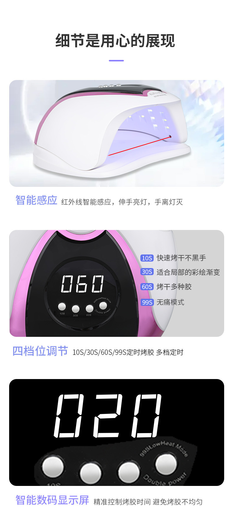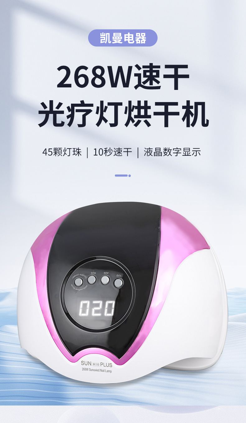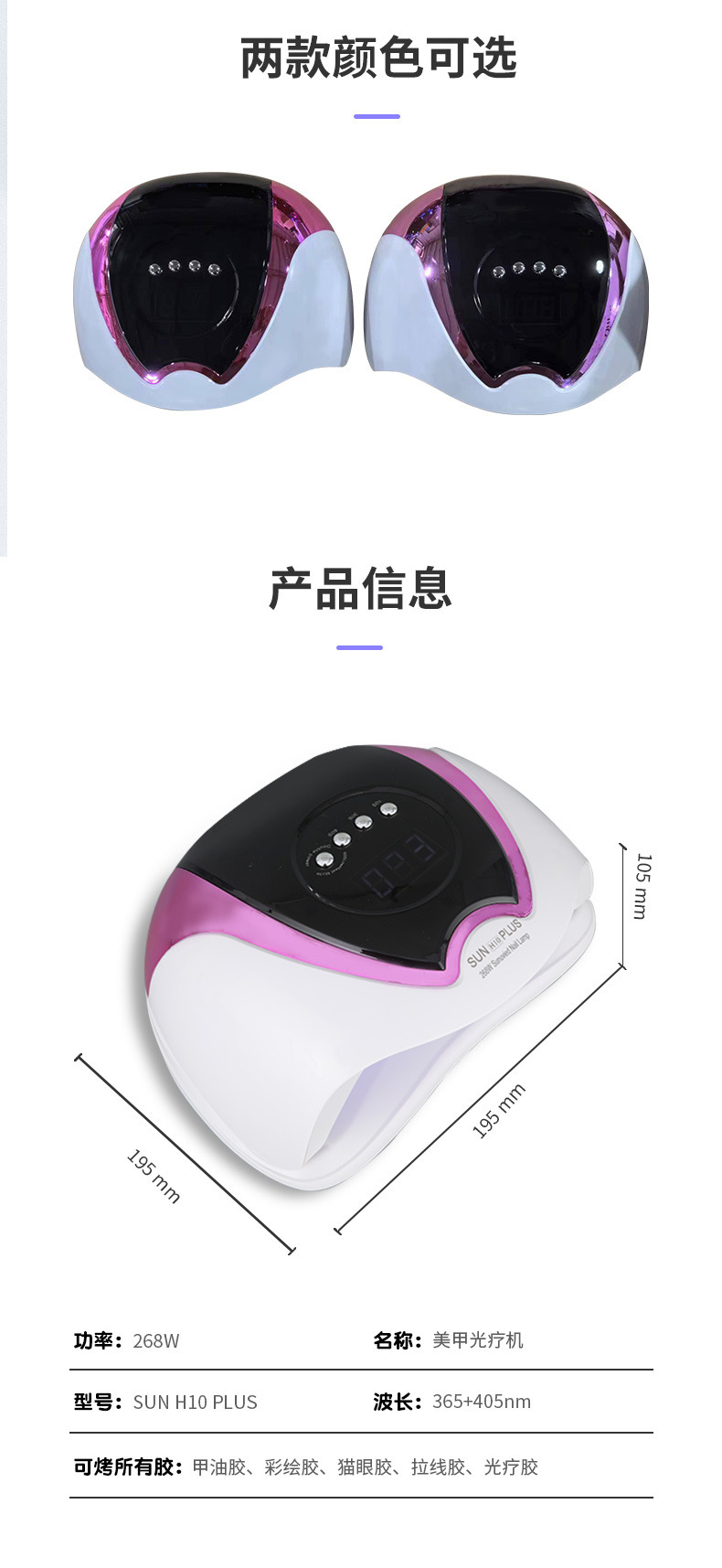 跨境新款美甲灯双手UV美甲烤灯268W大功率光疗灯美甲灯速干不黑手