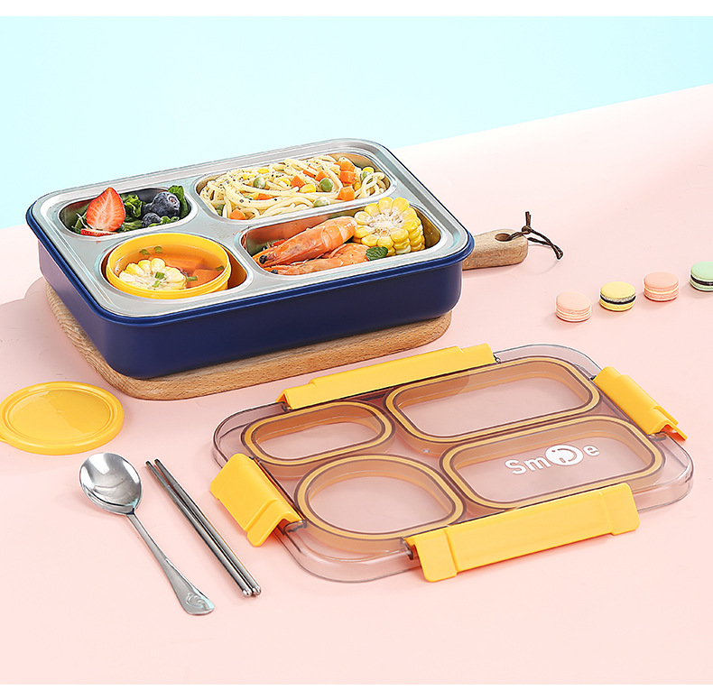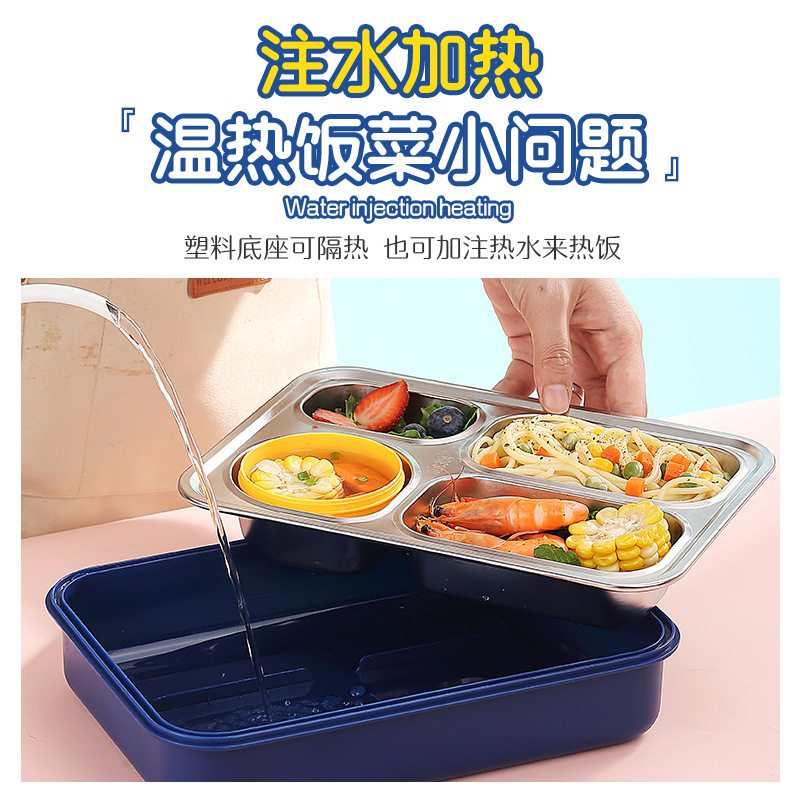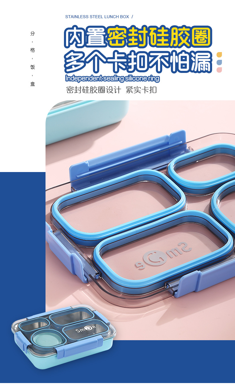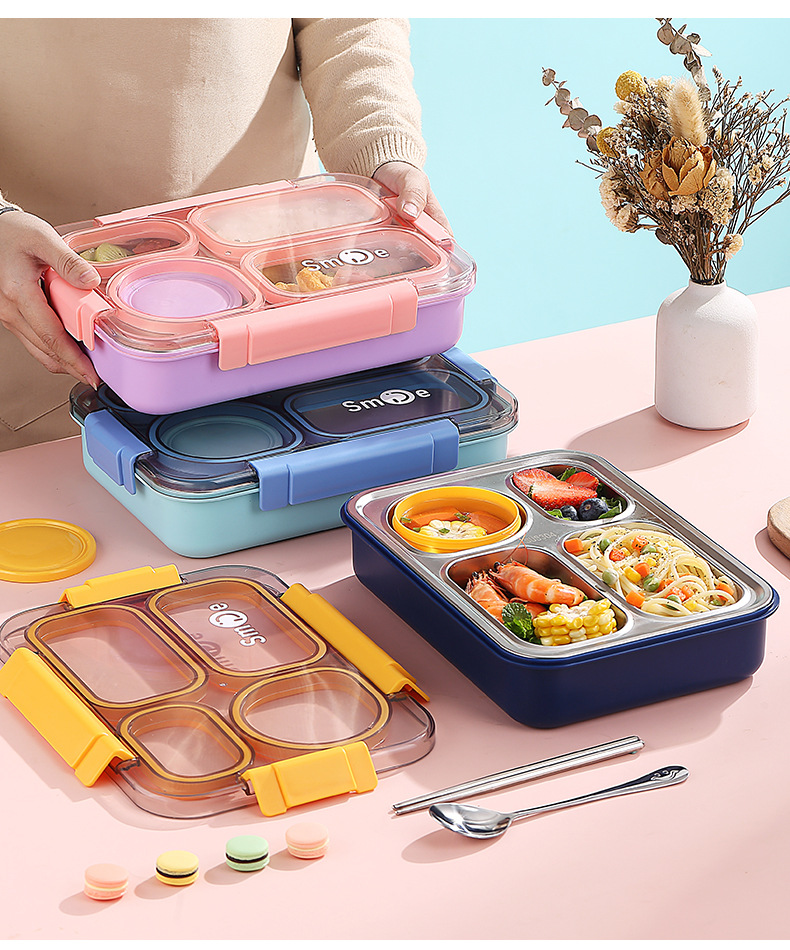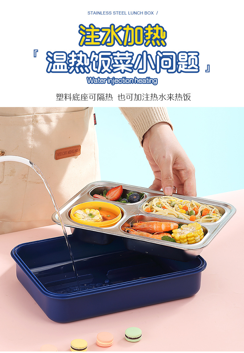 新款日式简约304不锈钢密封分格便当盒四格带碗筷户外休闲批发