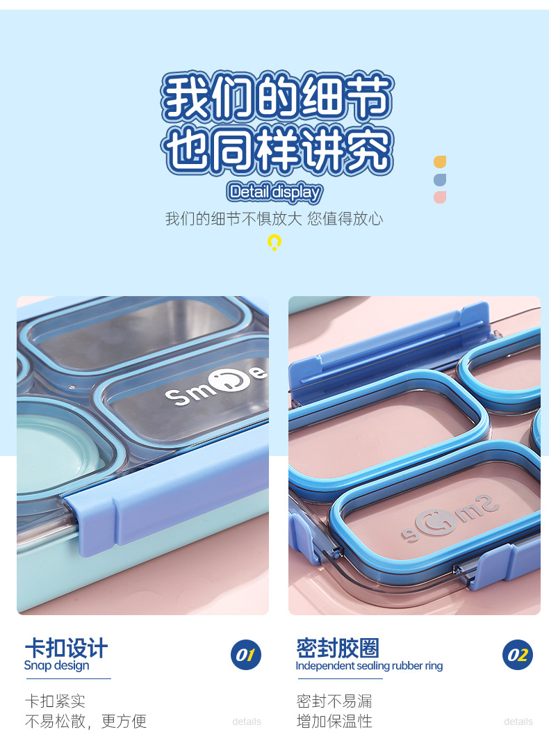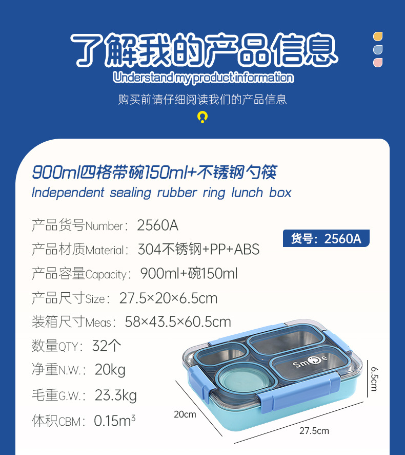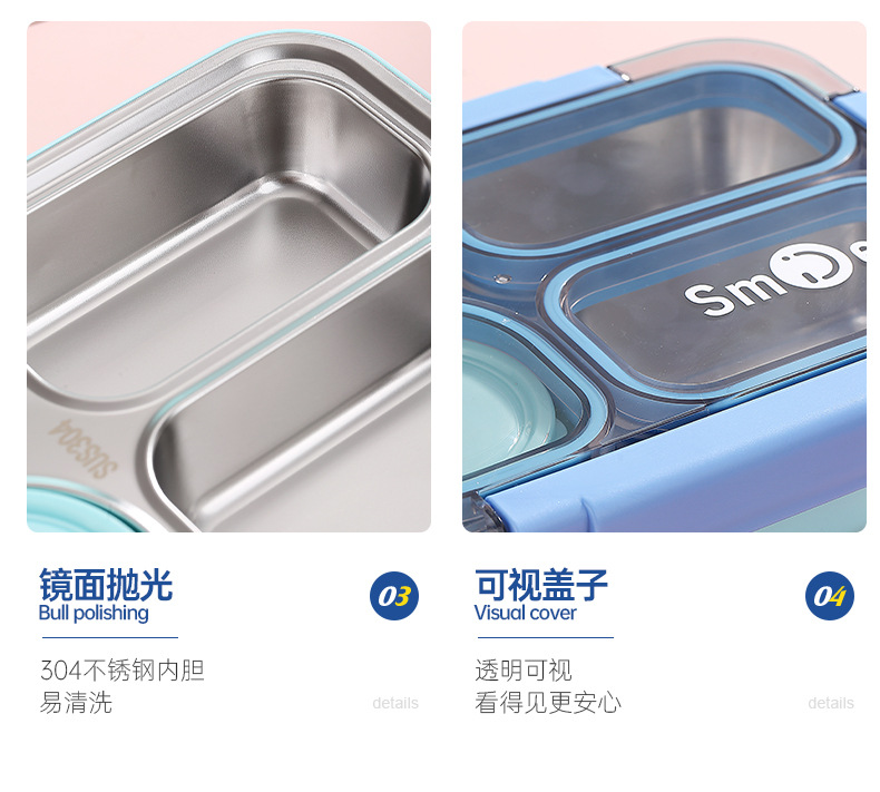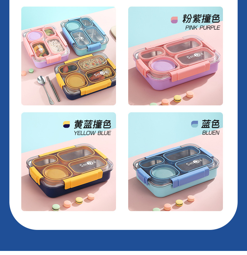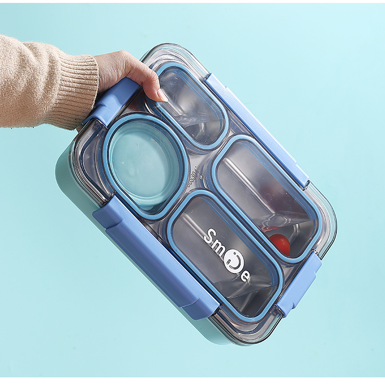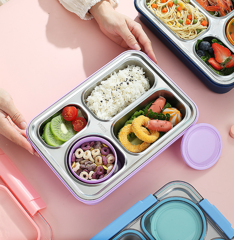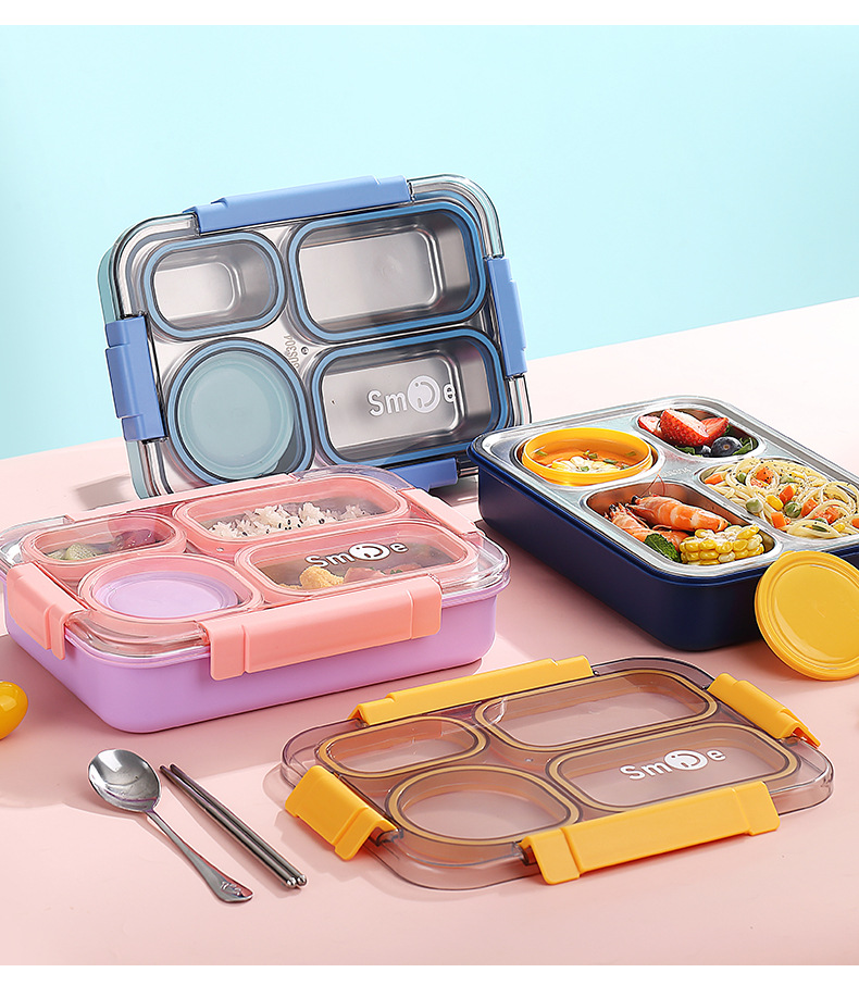 新款日式简约304不锈钢密封分格便当盒四格带碗筷户外休闲批发