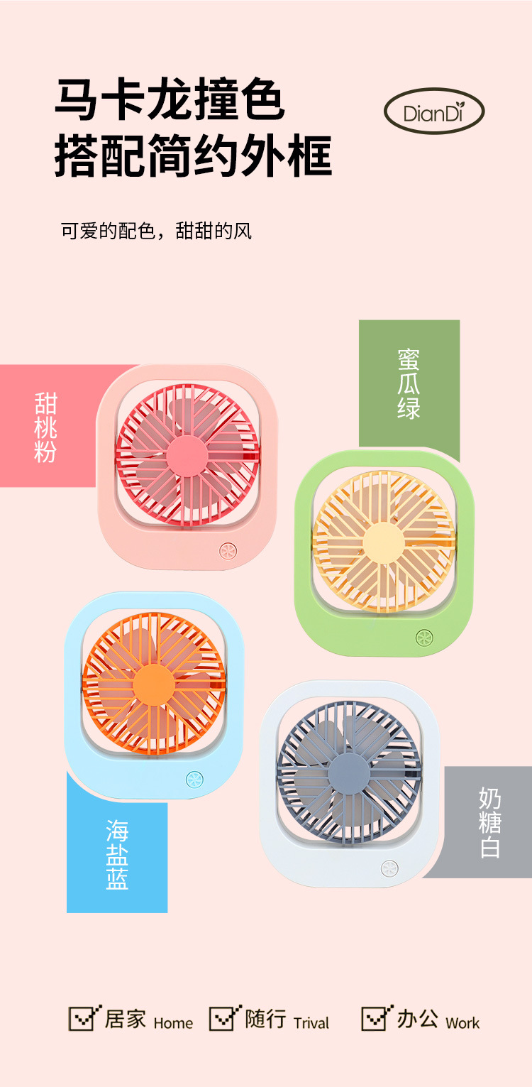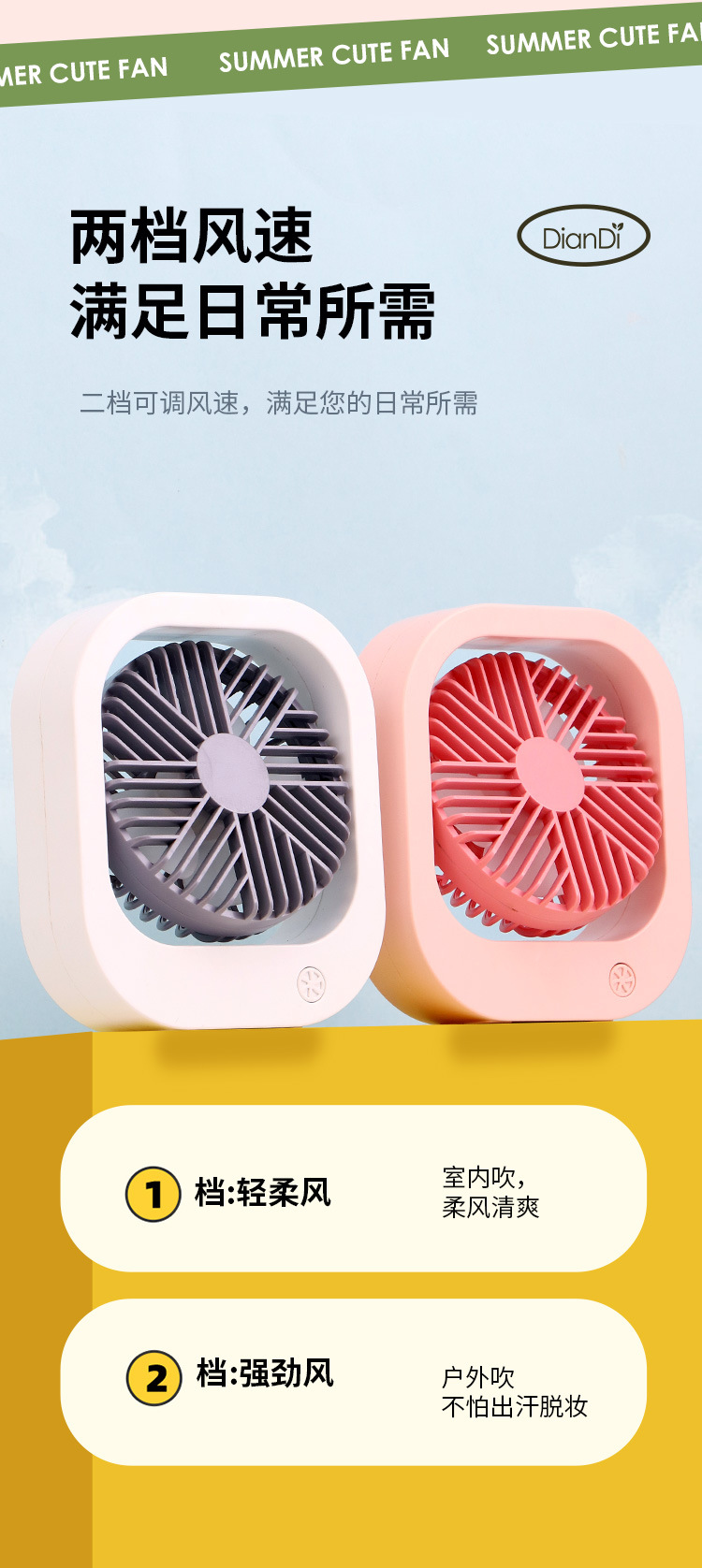 方形台式USB静音小风扇手持充电办公桌学生宿舍便携风扇