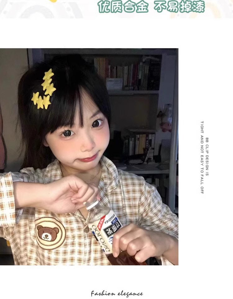 多巴胺黄色刘海发夹女儿童碎发鸭嘴一字夹子头饰可爱星星边夹发卡