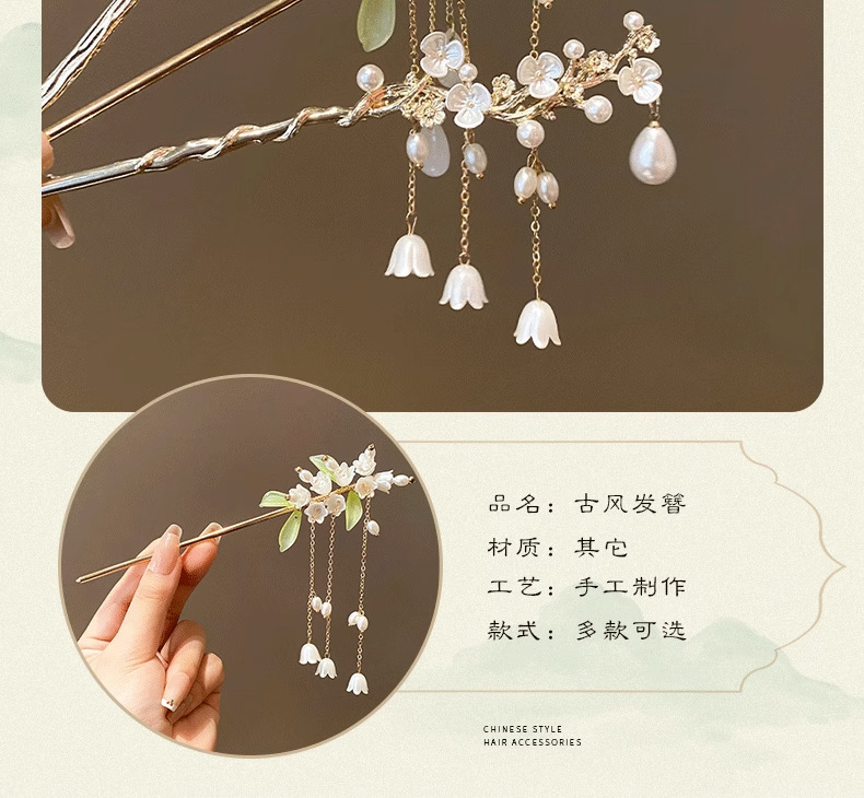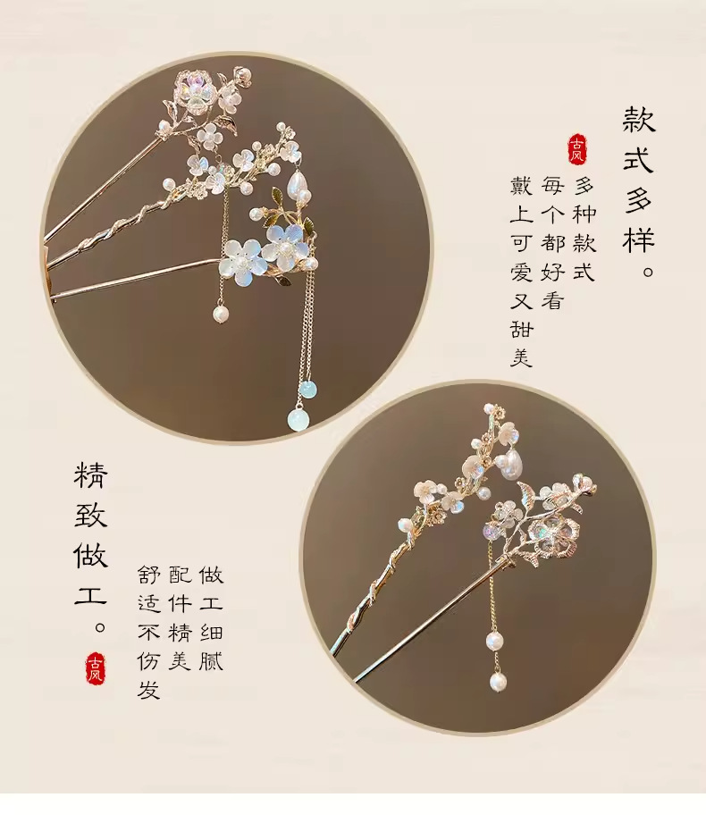新中式高级感发簪古风流苏步摇古装汉服发饰盘发簪子头饰木簪发钗