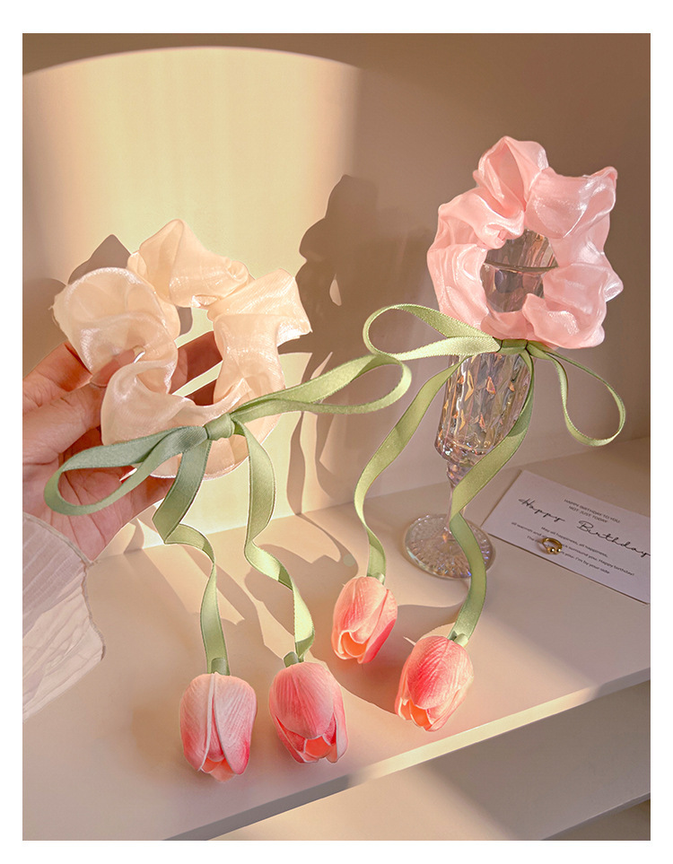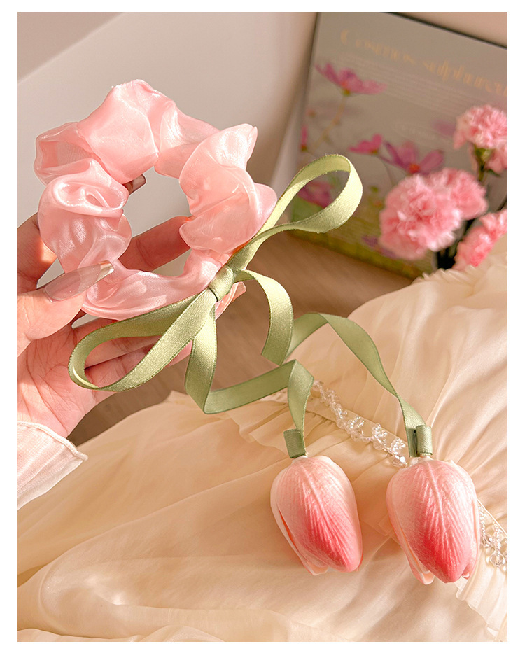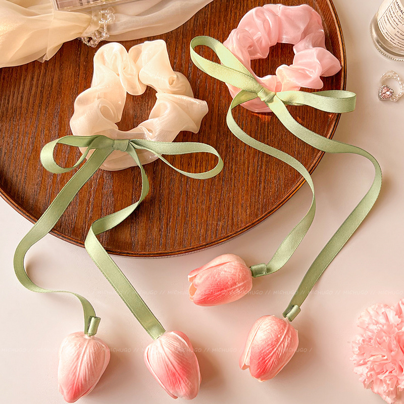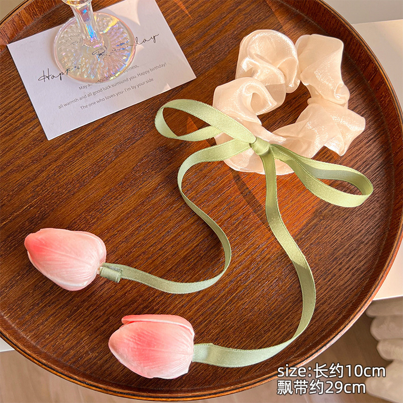 郁金香飘带大肠发圈森系发饰皮筋头饰高级感马尾发绳女不伤发头绳