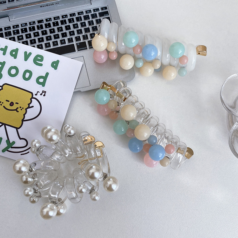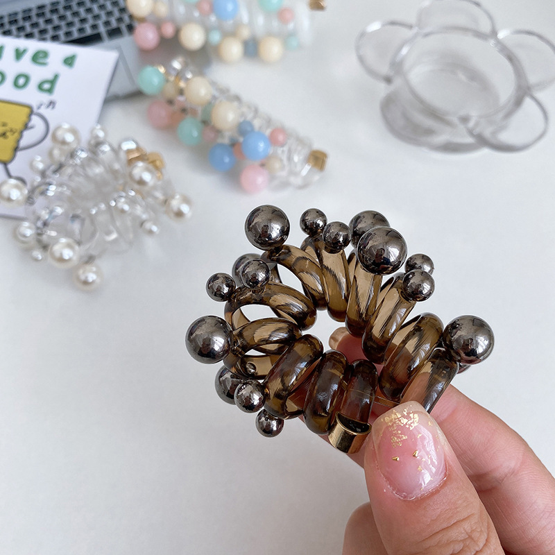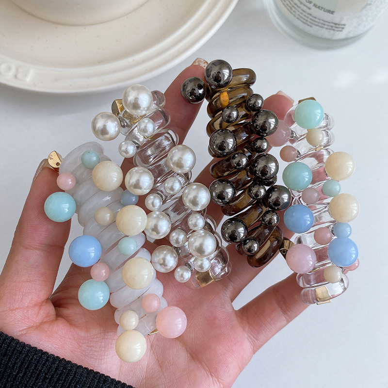 日系编发电话线发圈珠珠头绳高弹力低马尾发绳女2023新款皮筋扎头