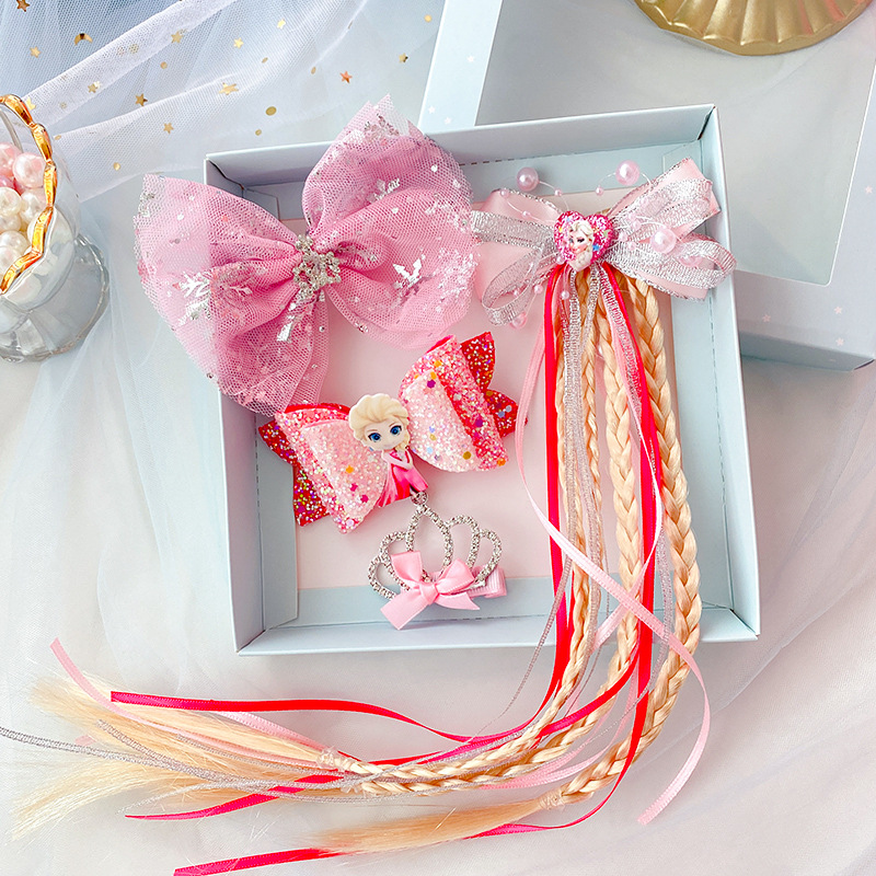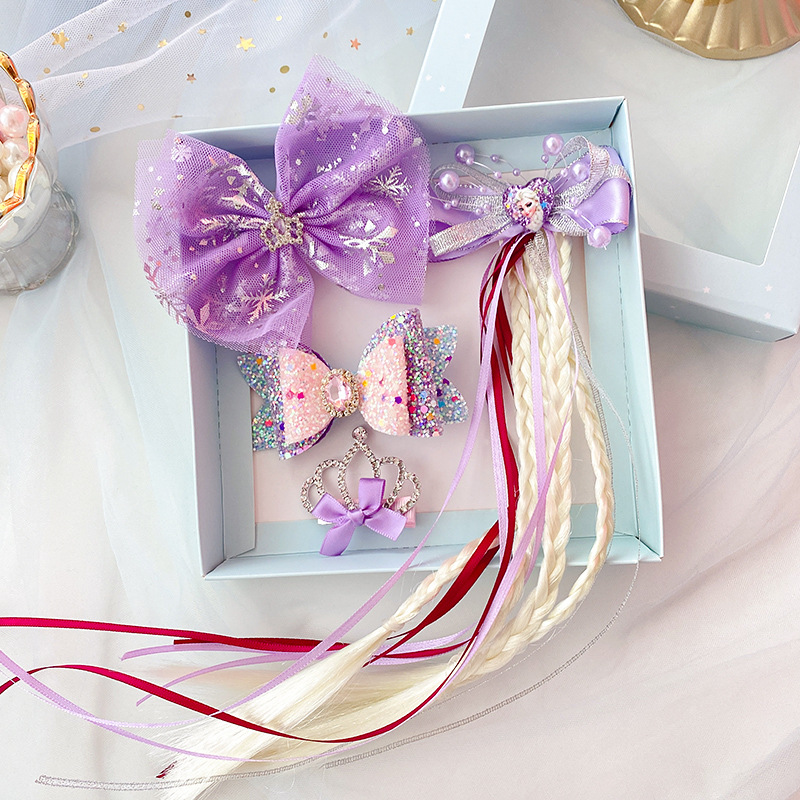 儿童皇冠冰雪女王发箍女童宝宝假发长辫子蝴蝶结发卡冰蓝公主发饰