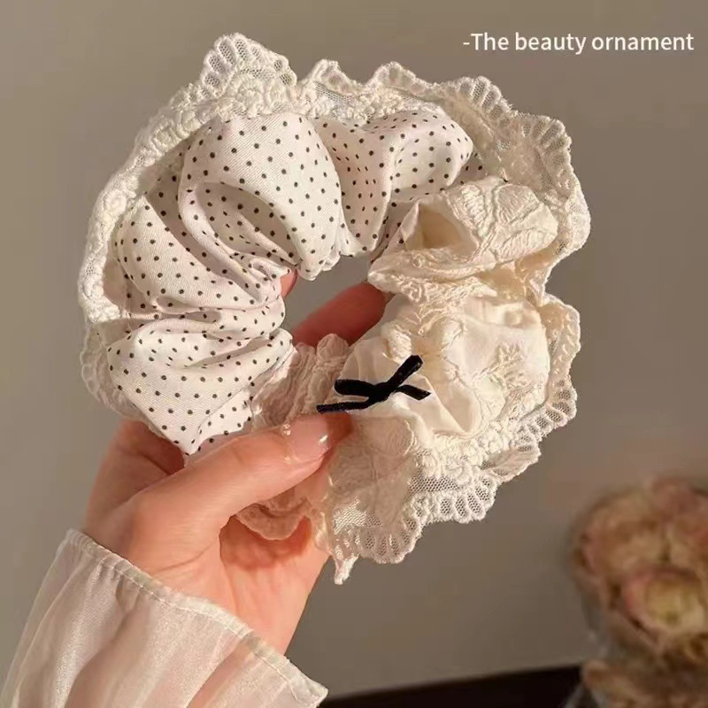 露丝同款英伦学院风蓝色格纹发圈ins百搭洋气法式复古蕾丝大肠圈