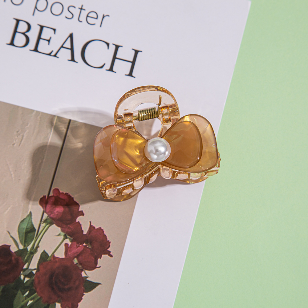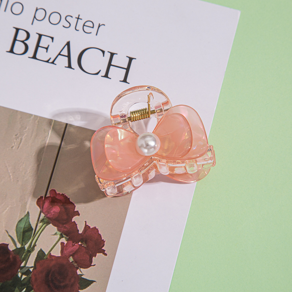 跨境蝴蝶结抓夹小号发夹发饰高级感儿童发夹珍珠半扎发发抓