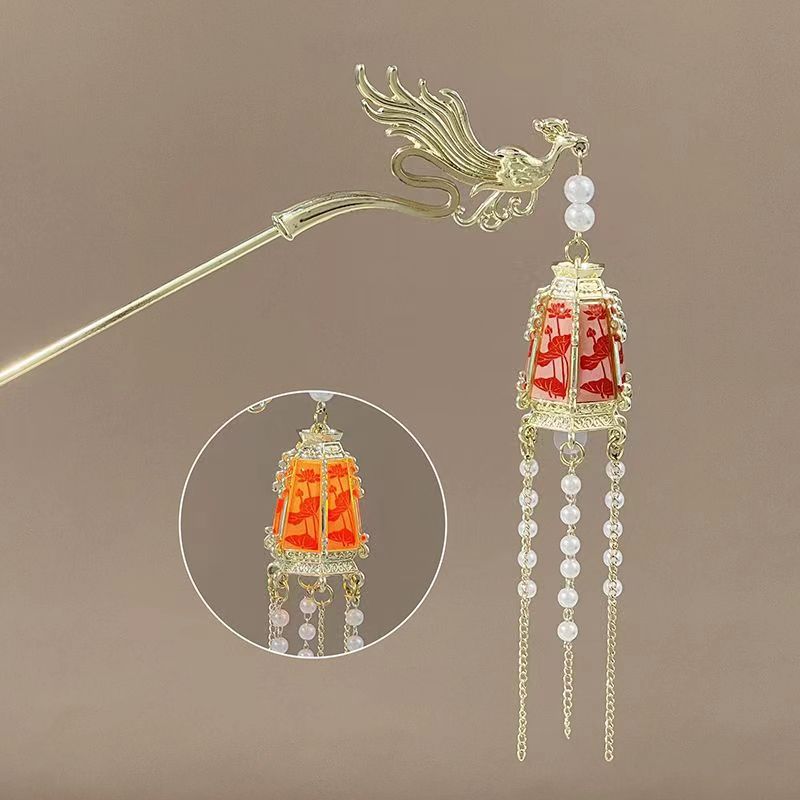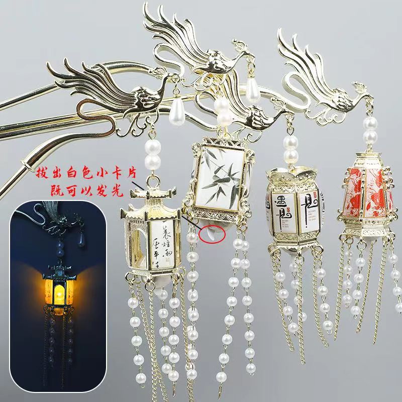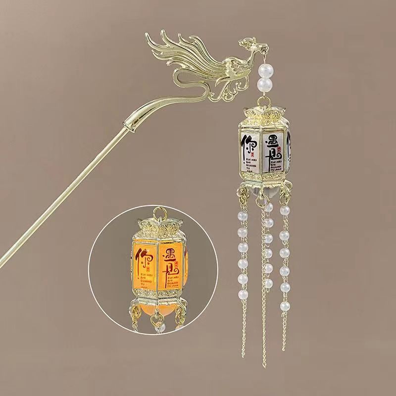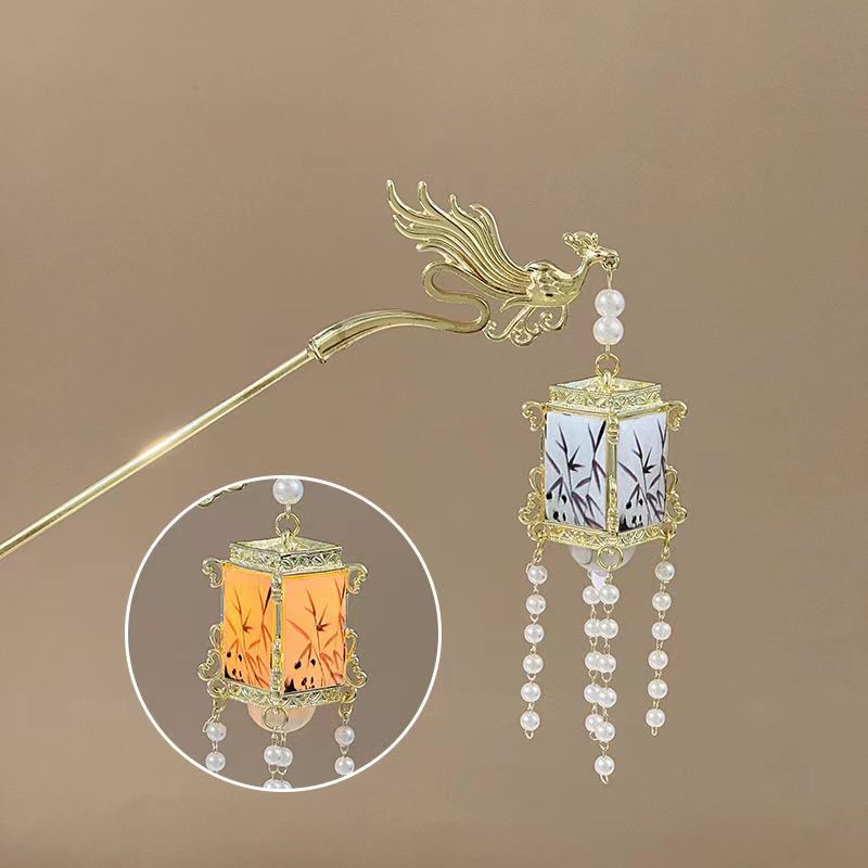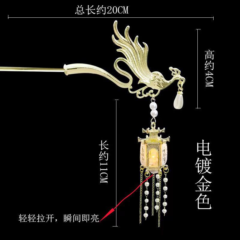 古风流苏发簪发光灯笼簪子金属凤凰宫廷仙气头饰日常百搭发饰品女