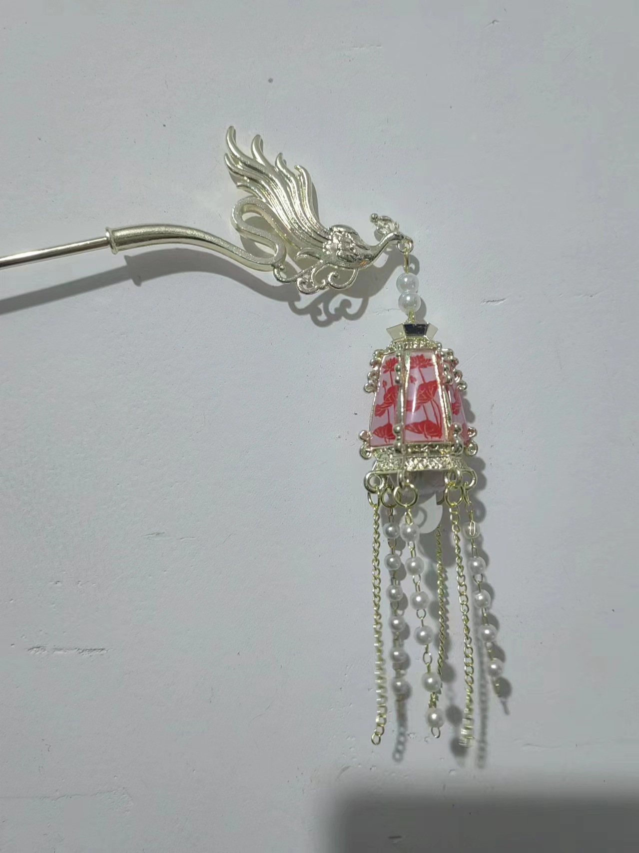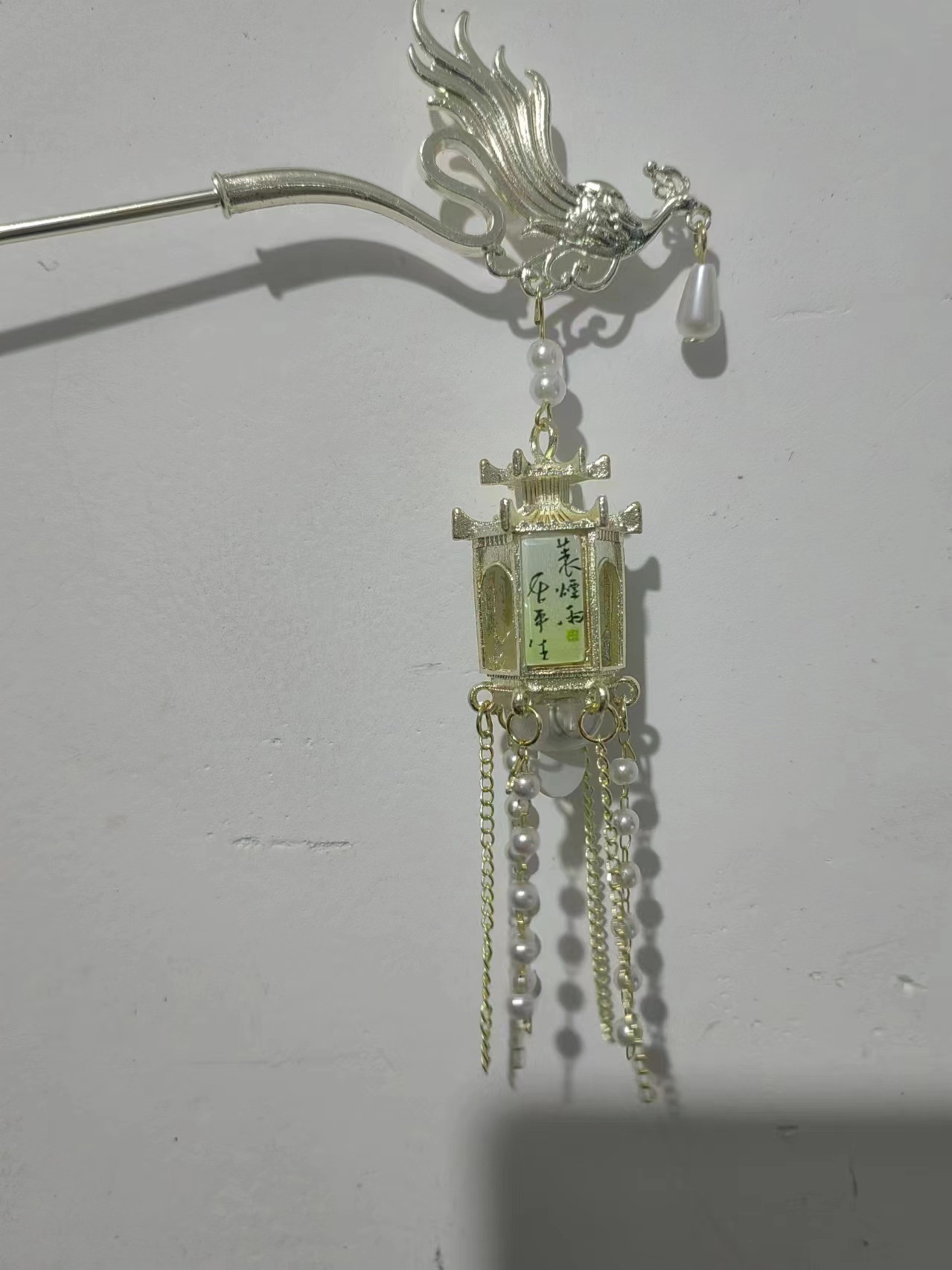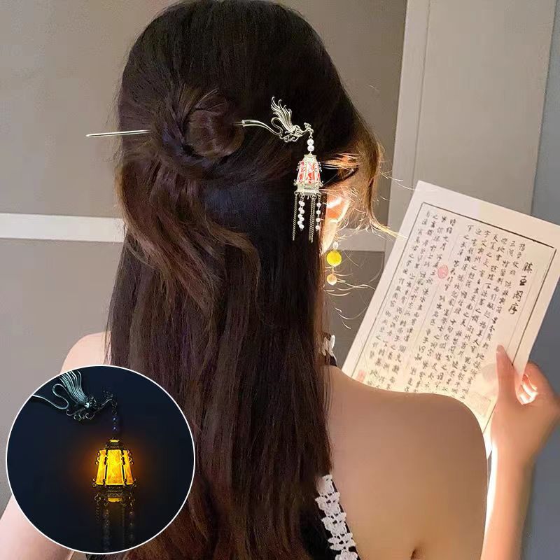 古风流苏发簪发光灯笼簪子金属凤凰宫廷仙气头饰日常百搭发饰品女
