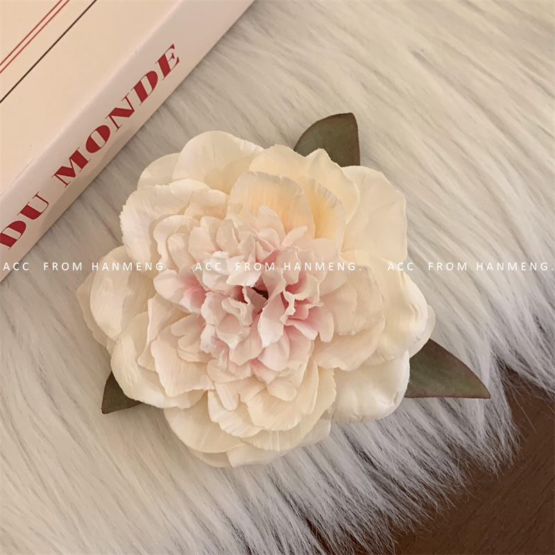 海边日落拍照发饰红色牡丹花朵发夹侧边夹子刘海夹头花发卡头饰女