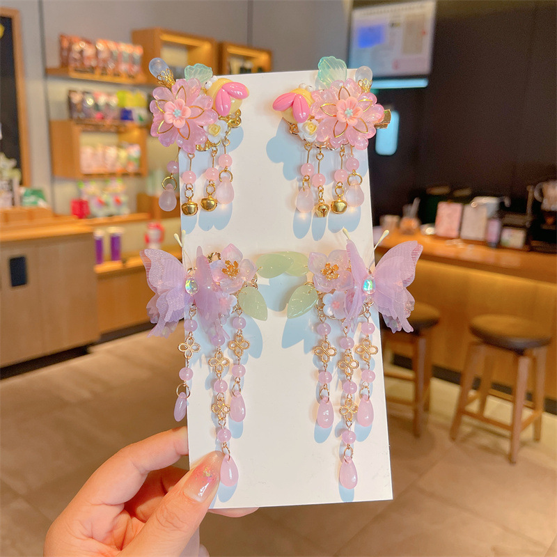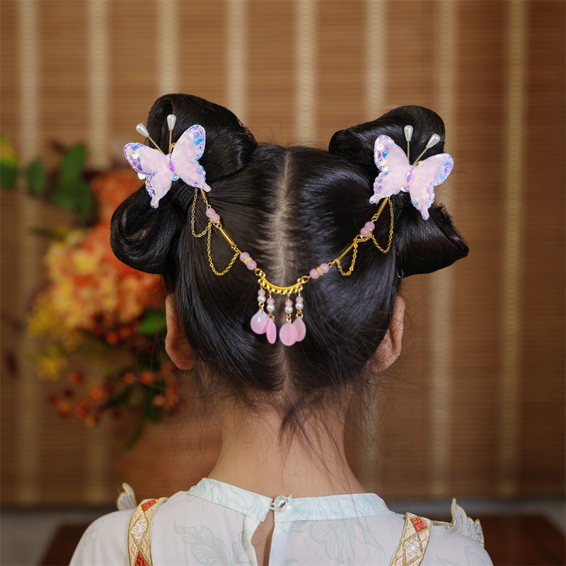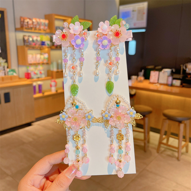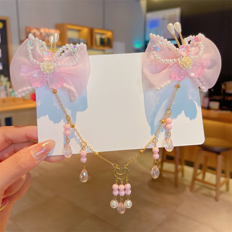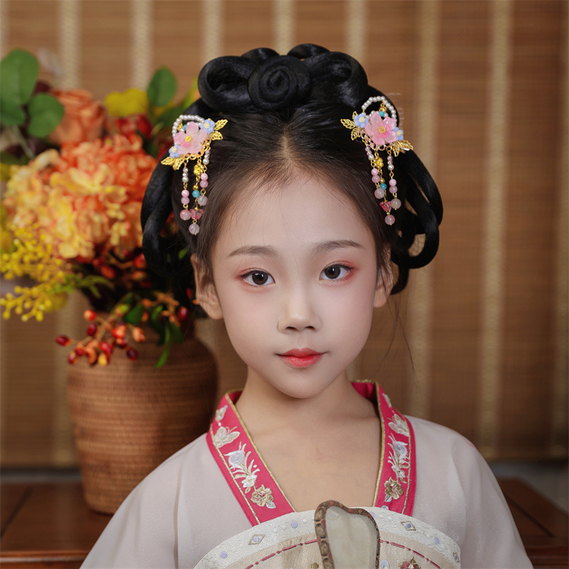 儿童古风汉服头饰女童中国风超仙发卡公主额链发饰古装流苏发夹