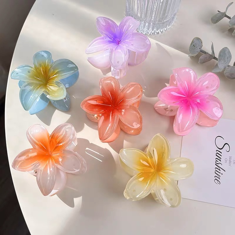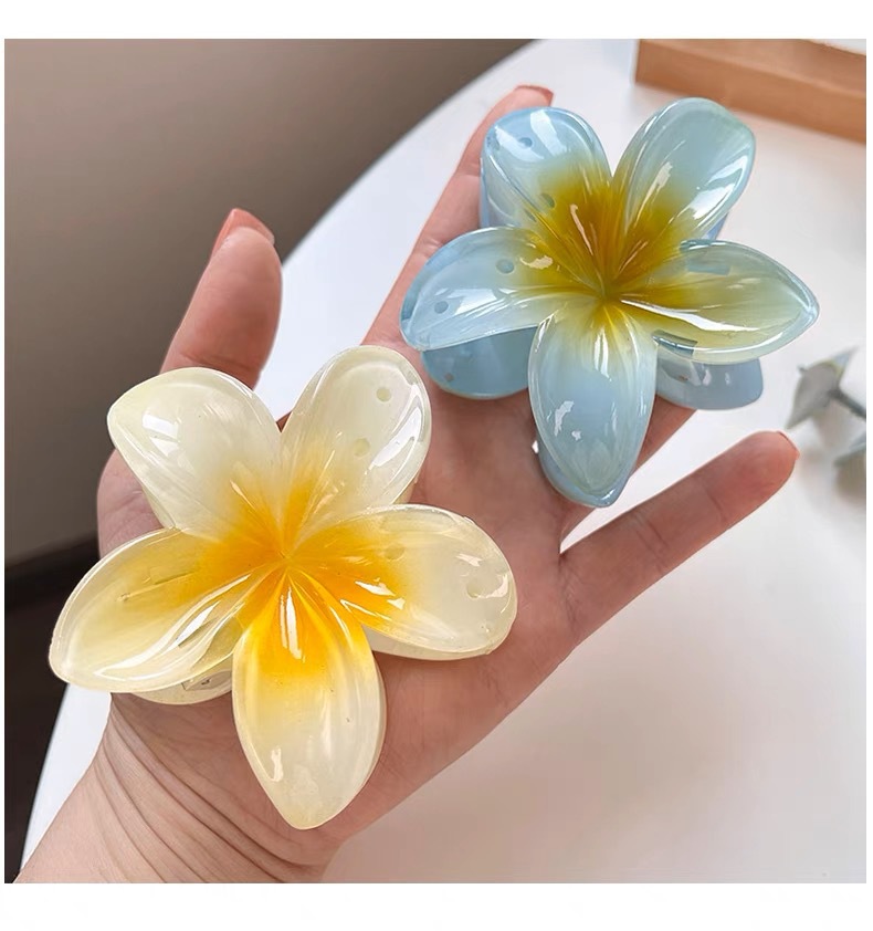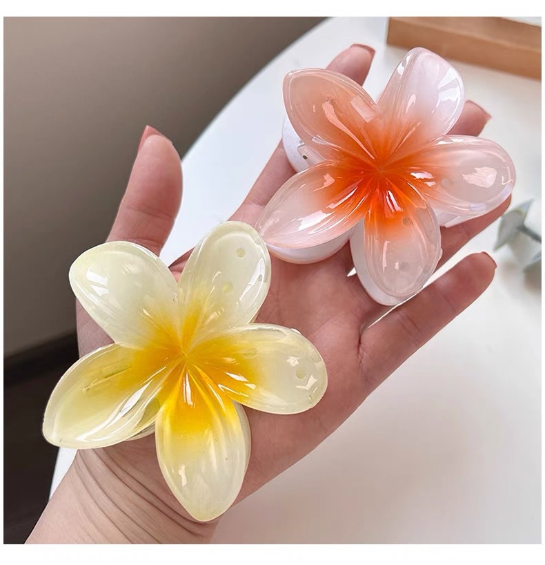欧美跨境爆款仿真立体鸡蛋花发夹发饰花朵抓夹优雅女士鲨鱼夹批发