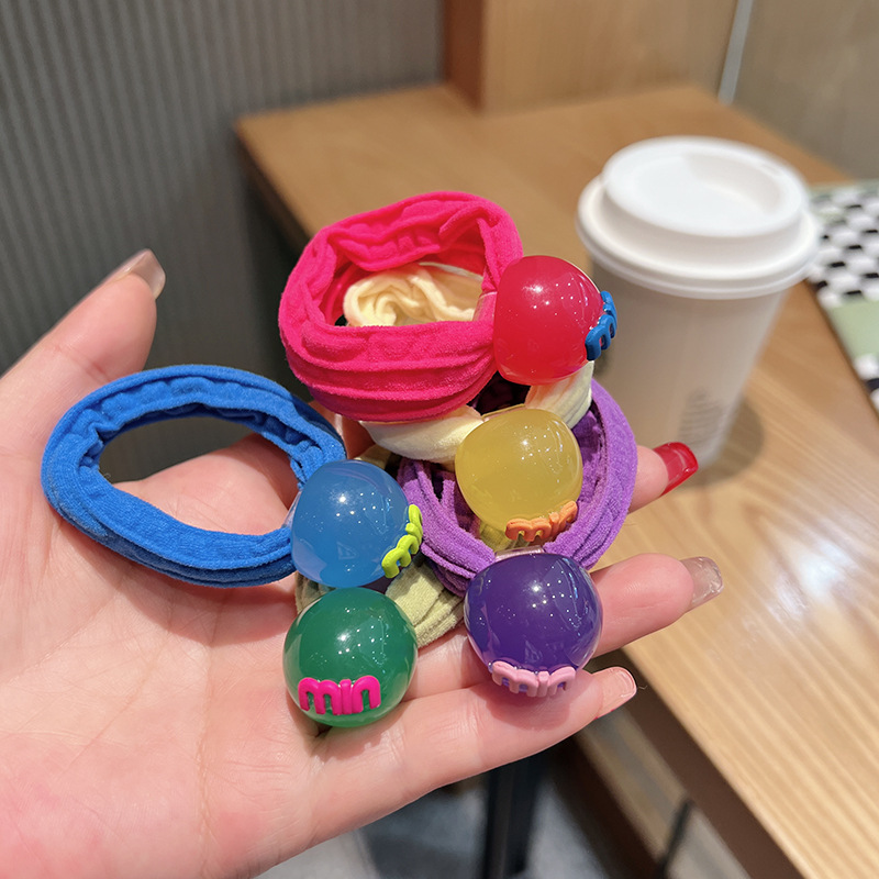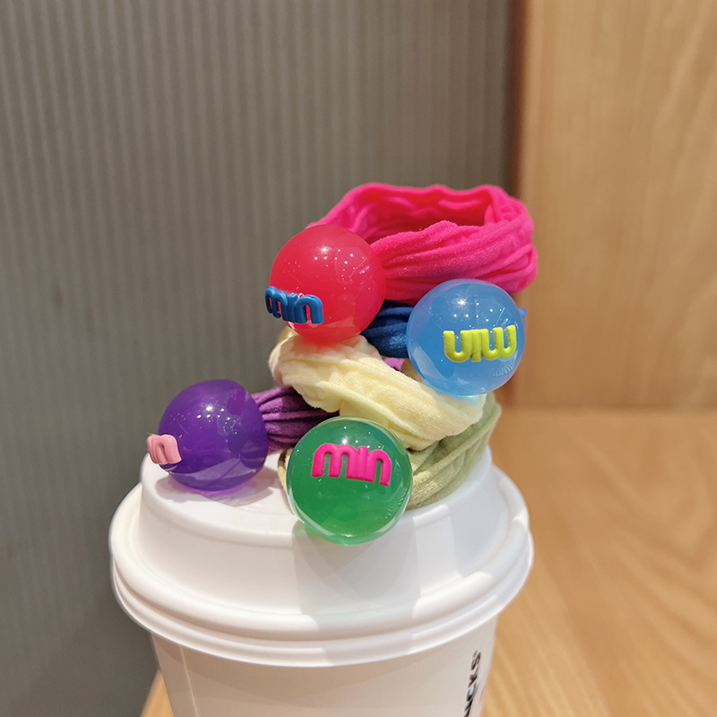 韩国东大门彩色豆豆字母头绳不伤发奶油毛巾圈发绳扎马尾发圈皮套