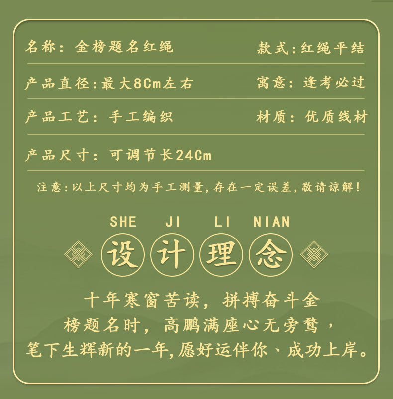 金榜题名中考高考手链手工编织逢考必过手绳学生考试祈福红绳礼物