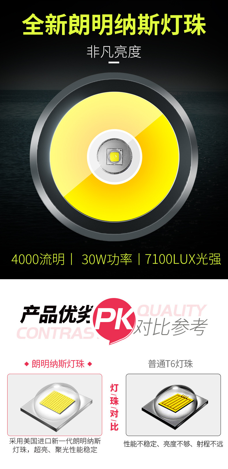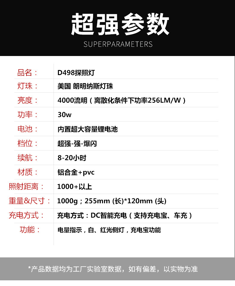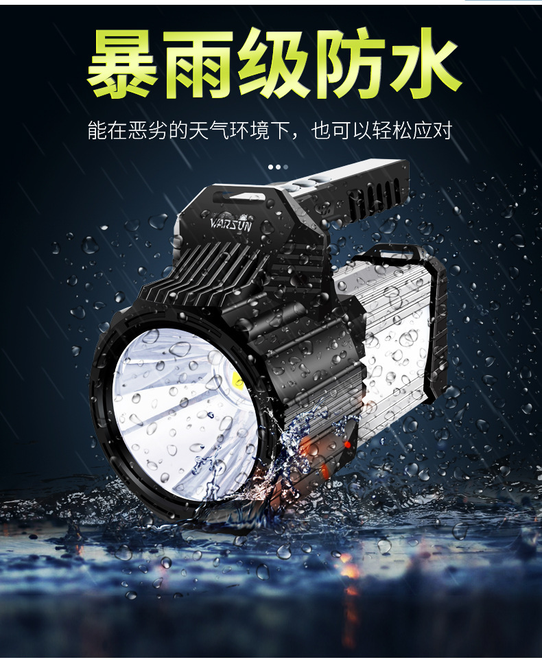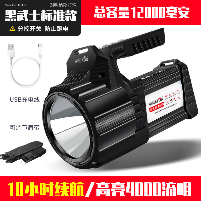 沃尔森厂家D498探照灯充电灯手提户外远射氙气家用超亮强光手电筒