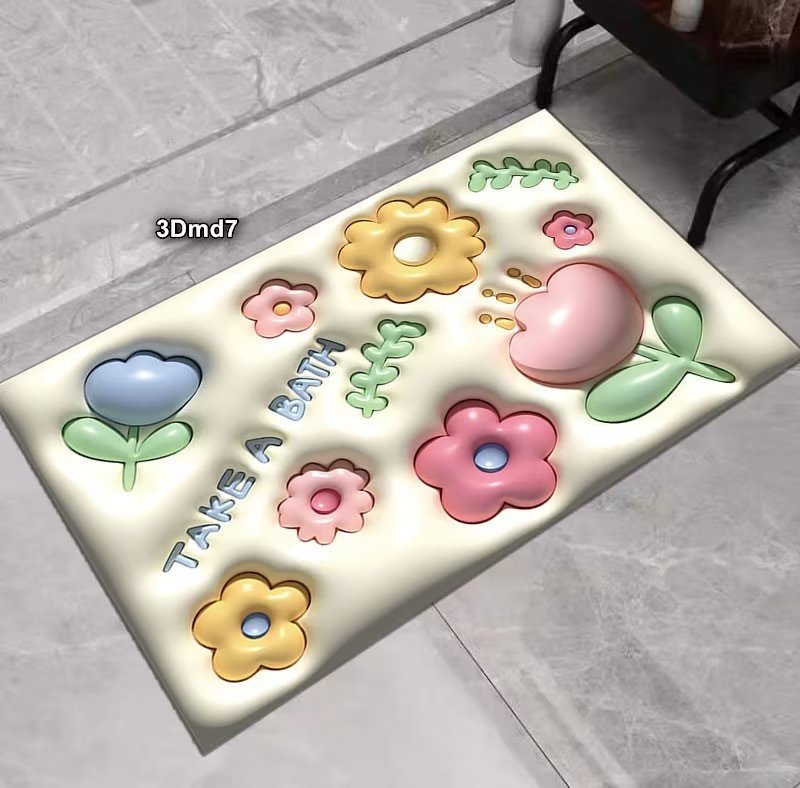 ins膨胀风3D小花浴室垫 家用卫生间进门吸水地垫 防滑硅藻泥地垫