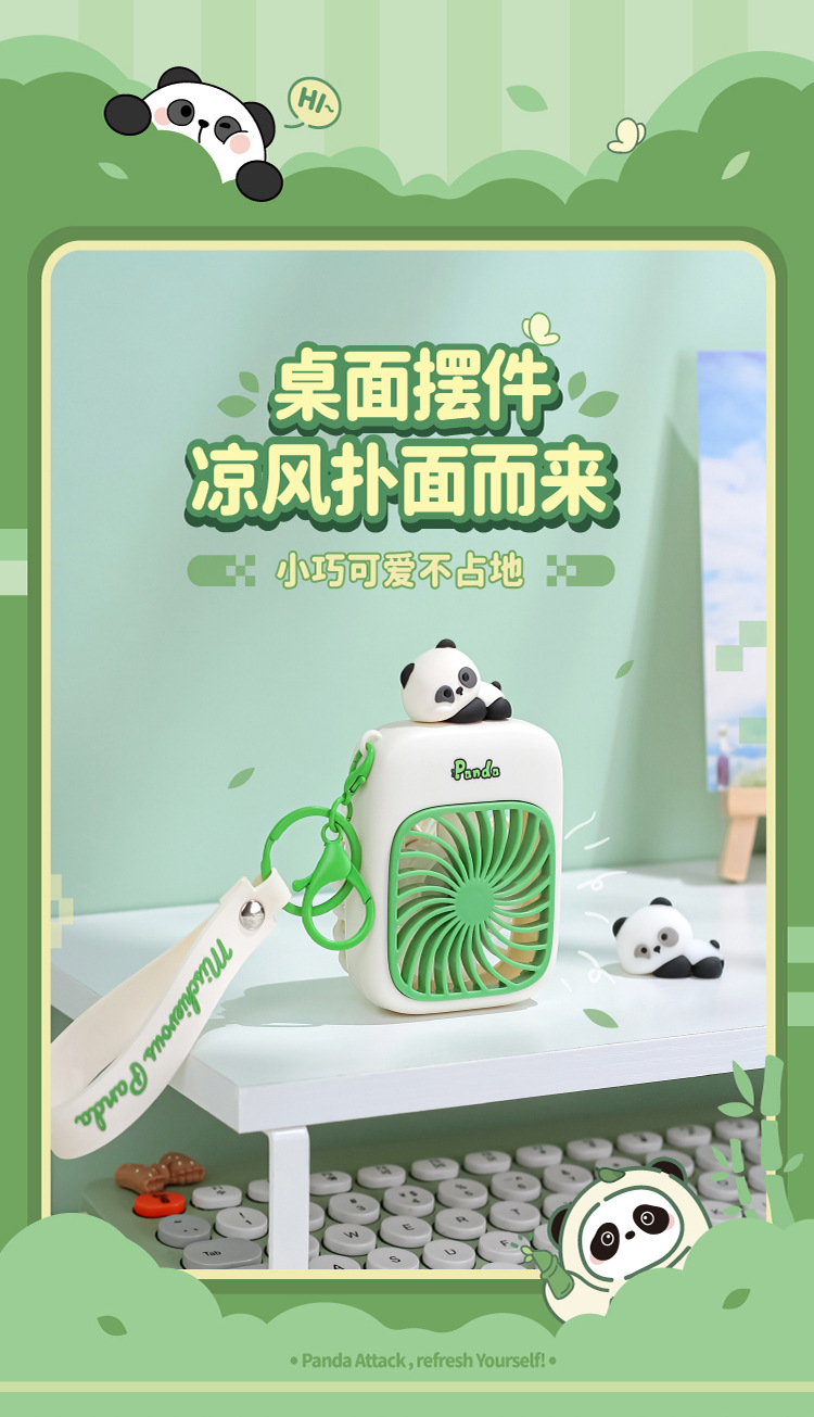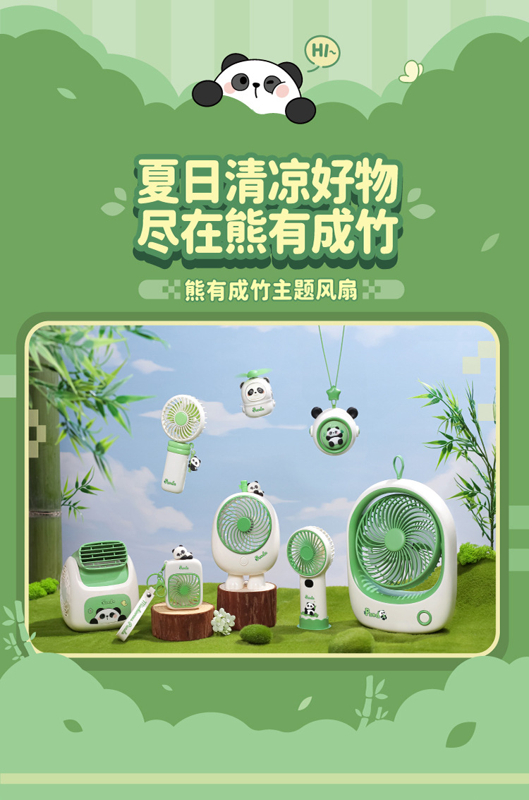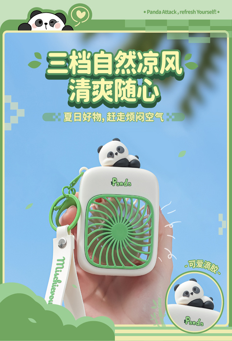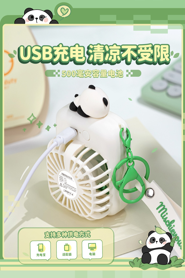 网红爆款迷你风扇熊猫家族USB可充电学生宿舍办公户外便携小电扇