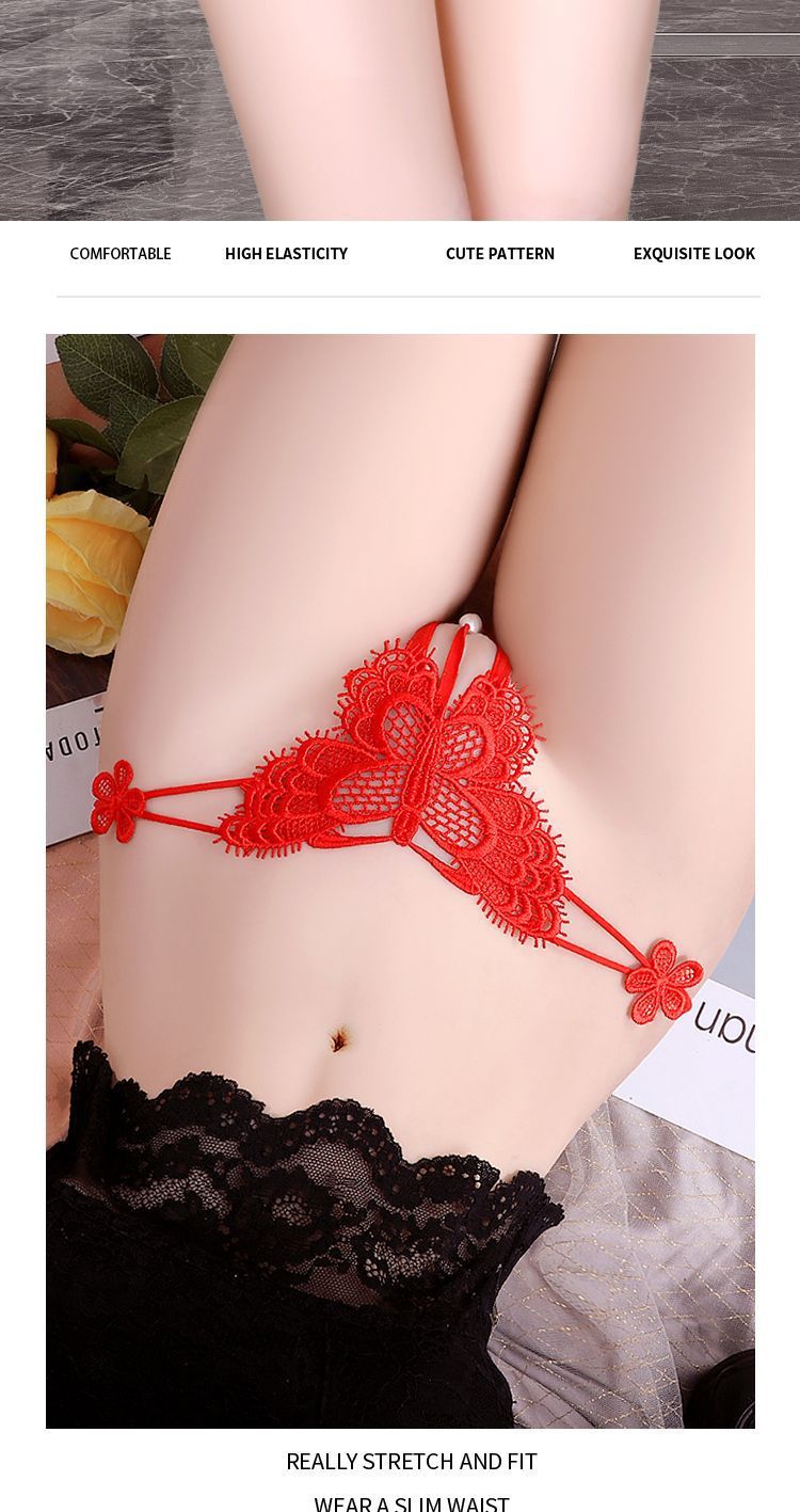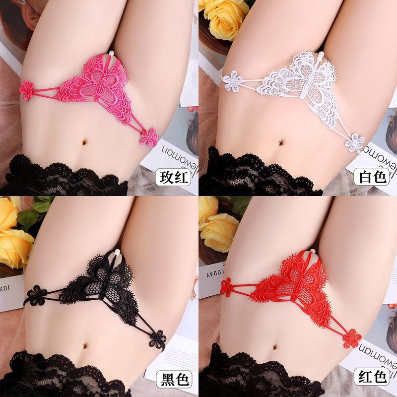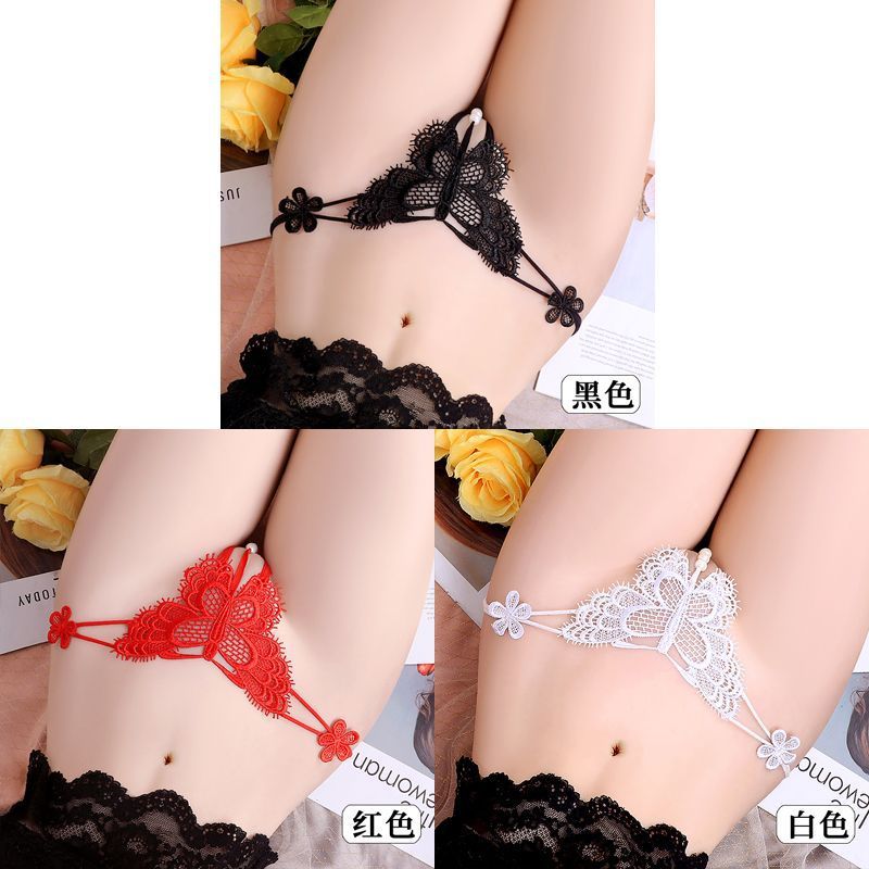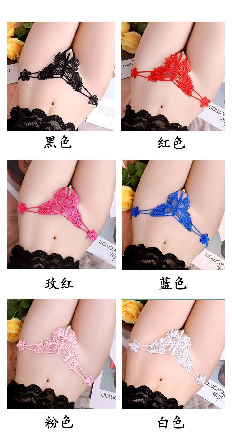 颜蓓薇抖音爆款内裤女细带镂空水溶蝴蝶个性迷人珍珠丁字裤3348