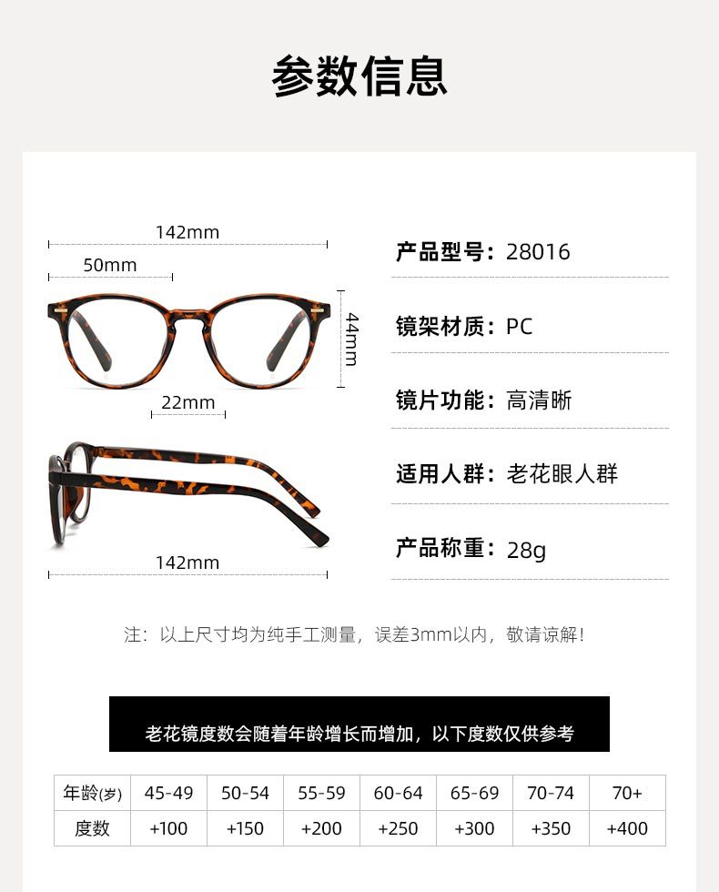 时尚新款老花眼镜男时尚防蓝光老花镜女眼镜高清阅读镜读书看报