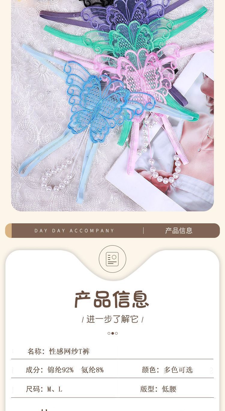 颜蓓薇一件代发夏季上新女士内裤蝴蝶刺绣透气网纱辣妹丁字裤422