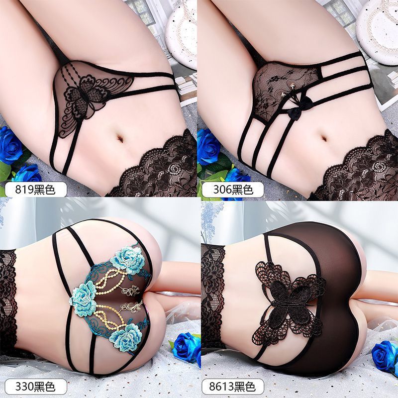 颜蓓薇性感蕾丝大码内裤女个性纯欲风刺绣镂空三角裤全黑