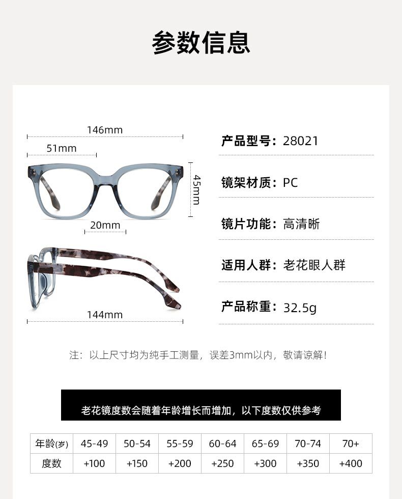 新款方框高清防蓝光老花镜男女同款复古老视镜中老年老花眼镜批发