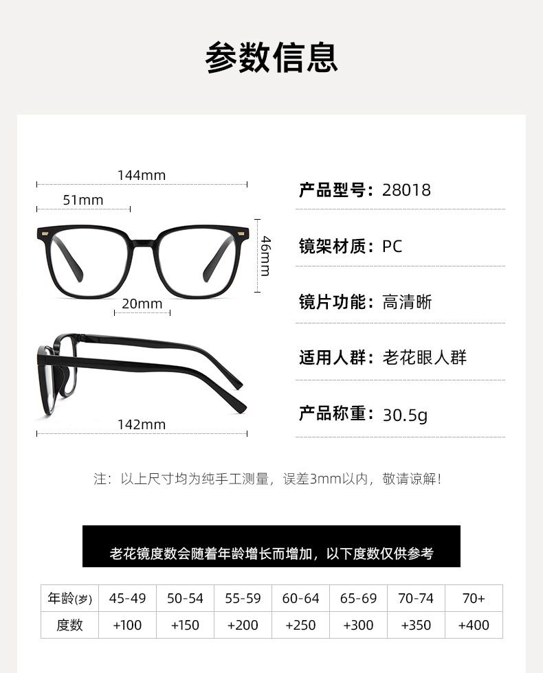 新款防蓝光老花眼镜男女高清玩手机老花镜看近中老年眼镜工厂批发