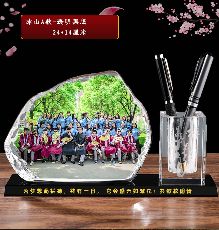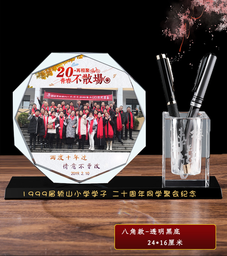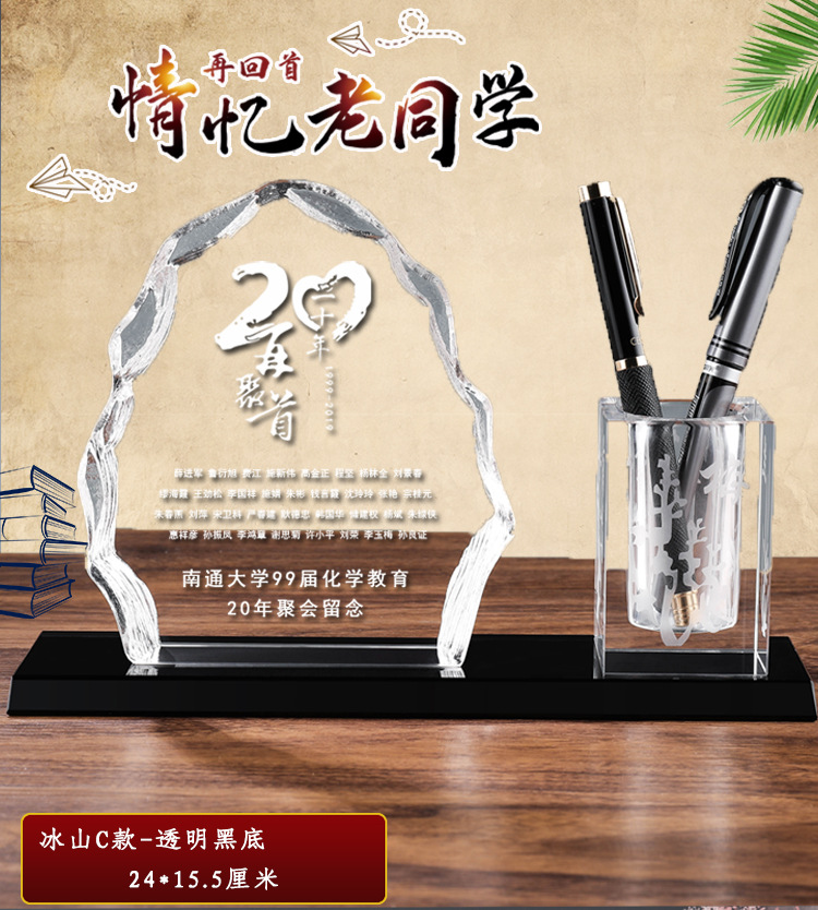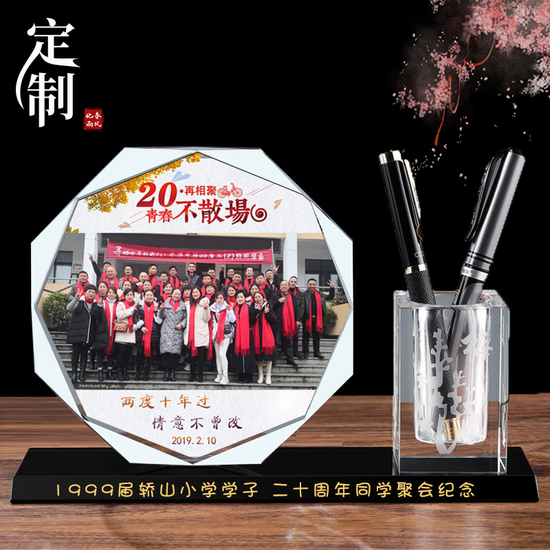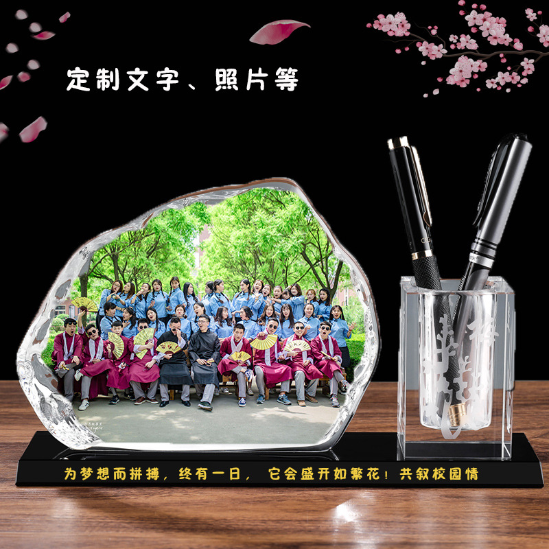 毕业礼物新款公水晶笔筒 印章 同学聚会毕业退伍军人留念办公摆件