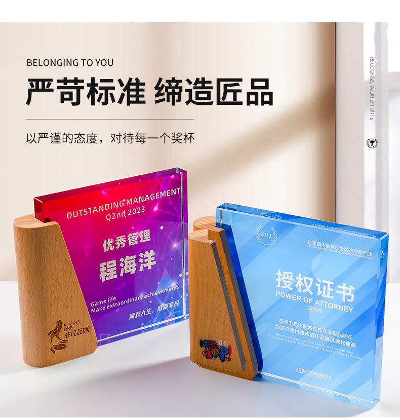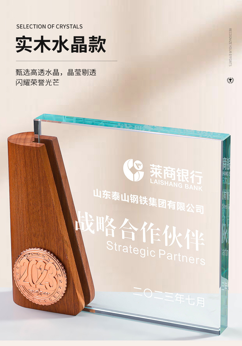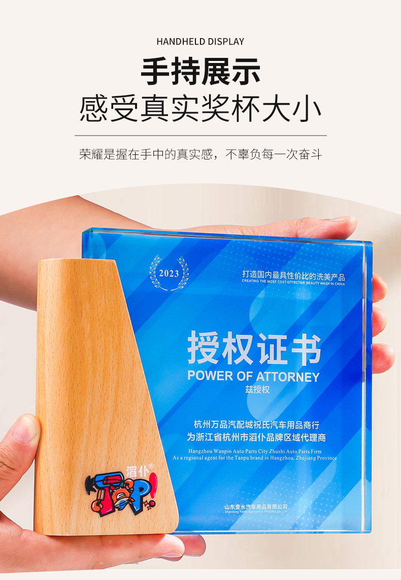 新款水晶奖杯年会颁奖经销代理商战略合作定 制授权牌刻字荣誉