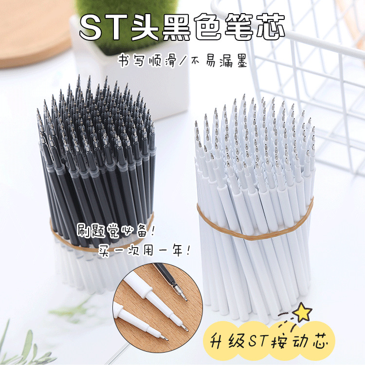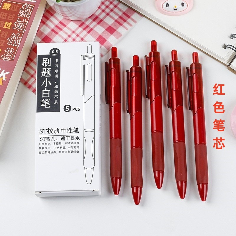按动速干小白笔ins高颜值中性笔0.5学生考试刷题笔ST头黑笔签字笔