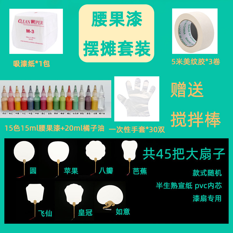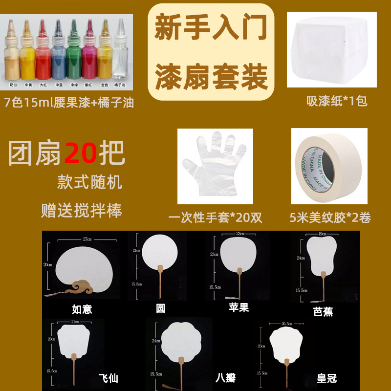 儿童节活动摆摊漆扇材料包diy扬州空白宣纸团扇腰果漆颜料夜市