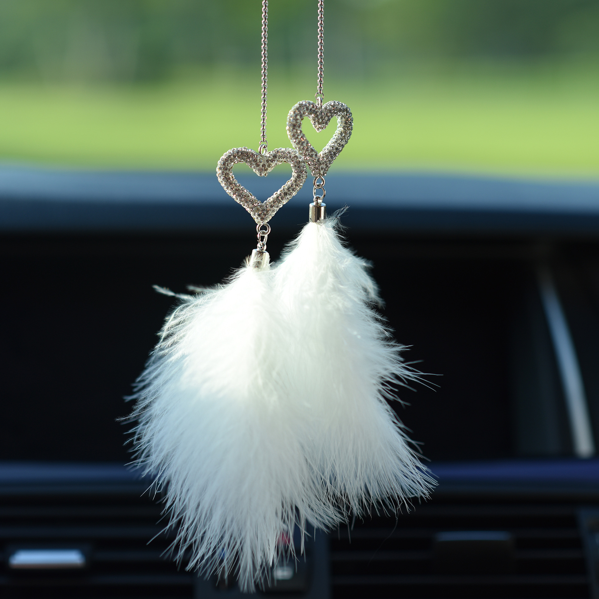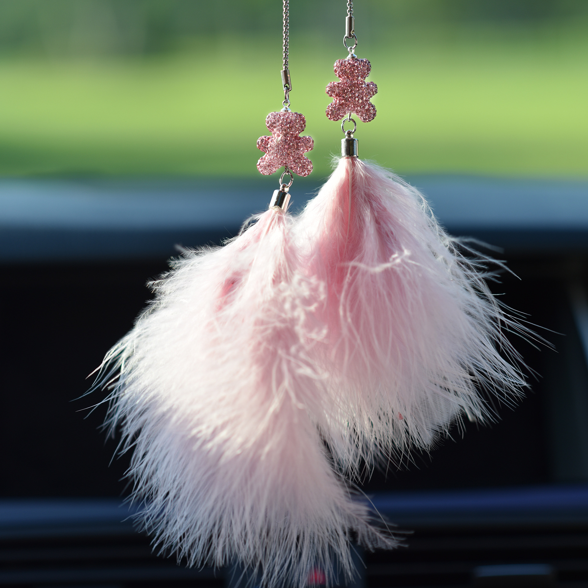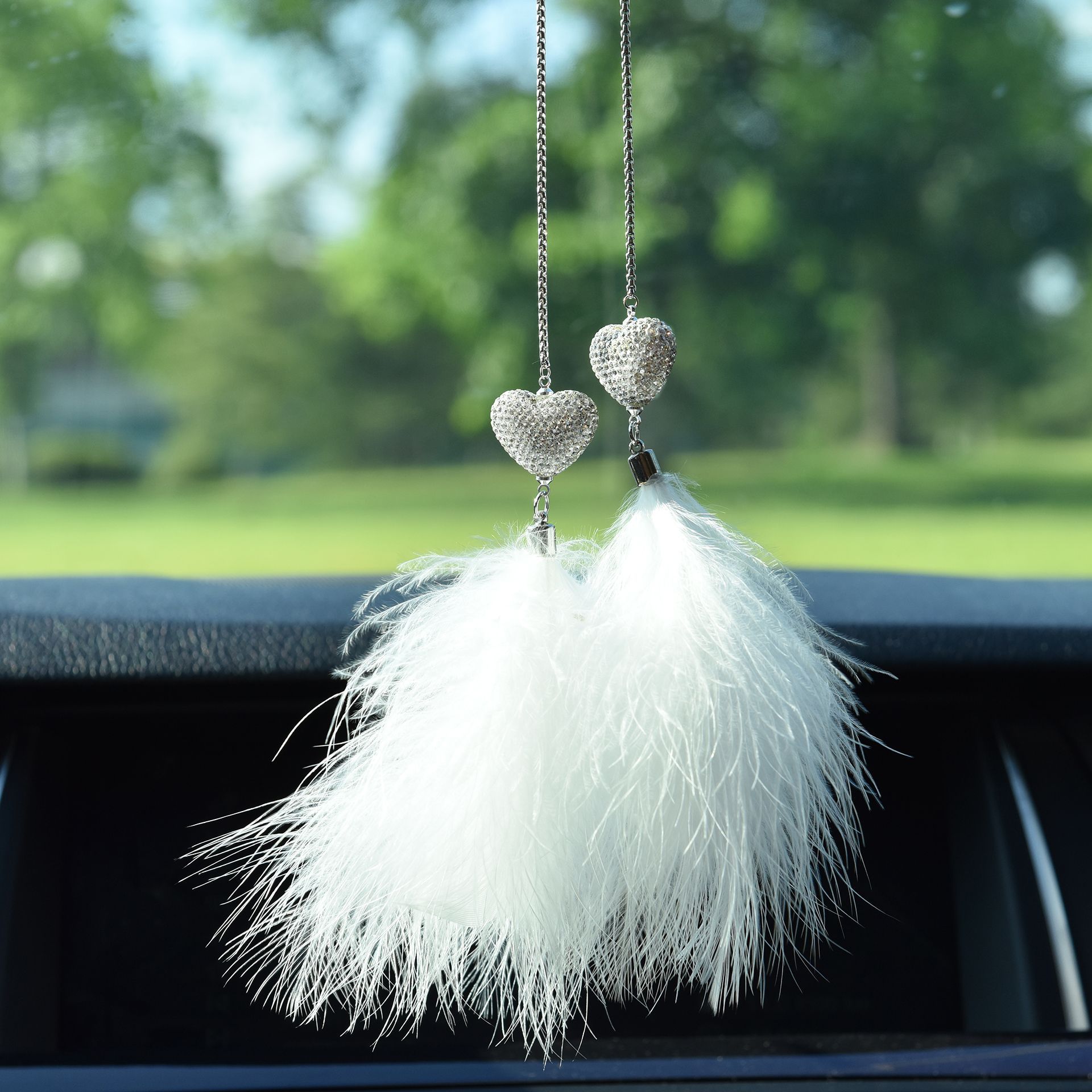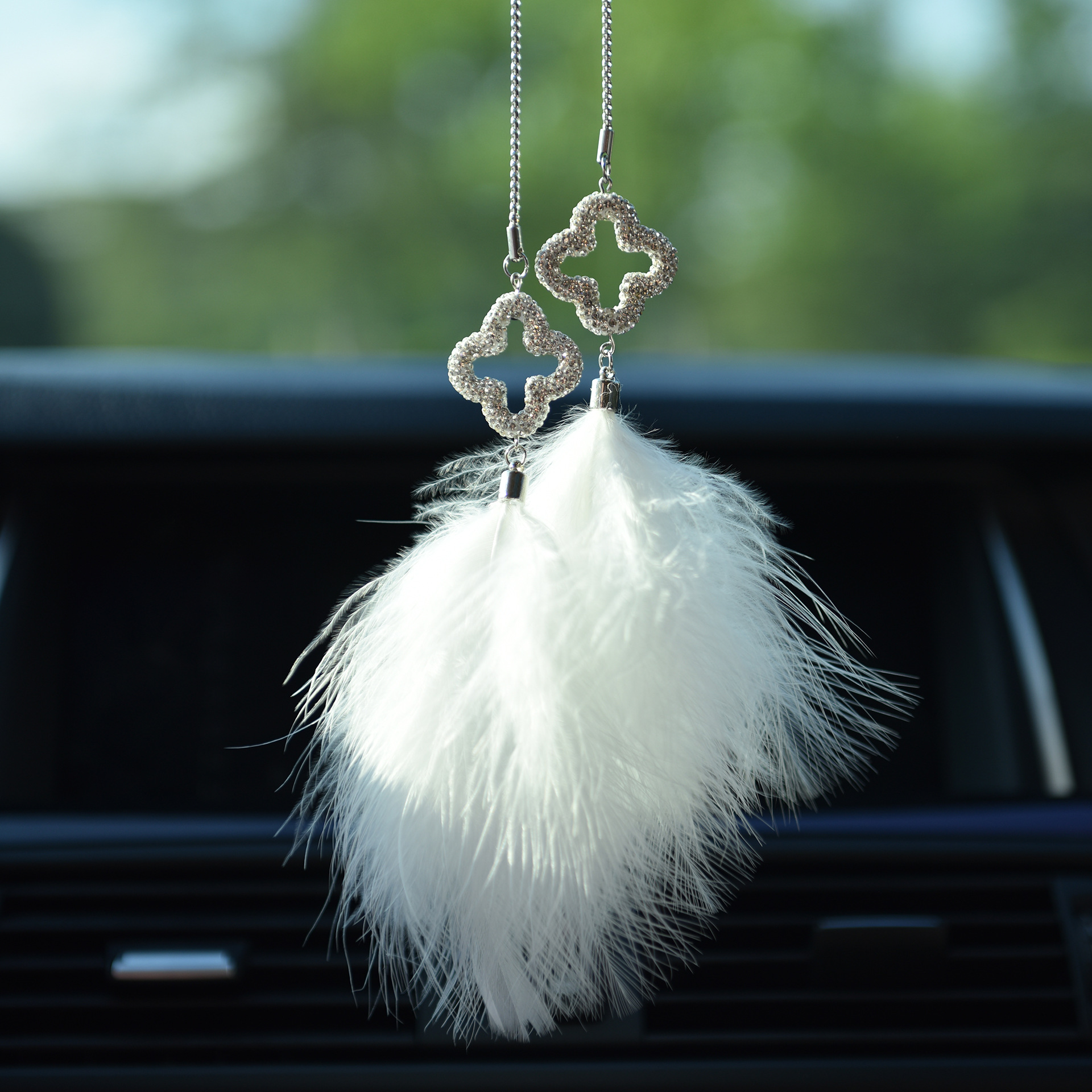 镶钻羽毛汽车内饰挂件后视镜简约时尚毛茸茸车载挂件