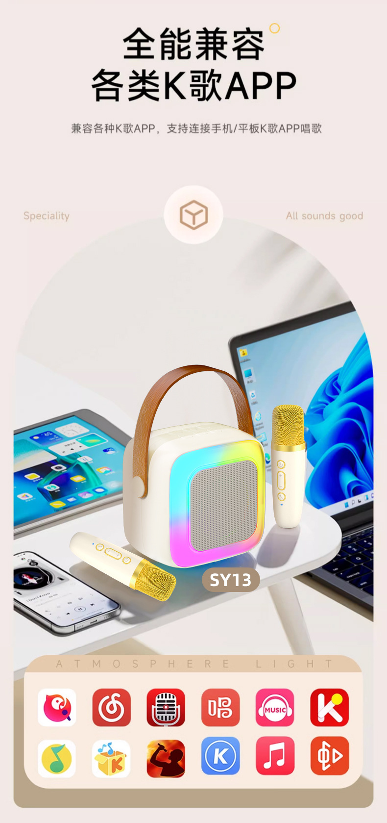 跨境新款SY13蓝牙音响 家庭朋友聚会K歌便携式无线麦克风蓝牙音响