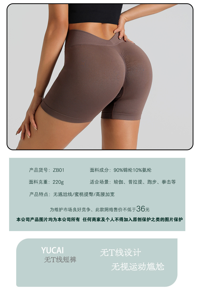欧美后V高腰蜜桃臀裸感瑜伽短裤夏季无缝速干户外跑步运动三分裤