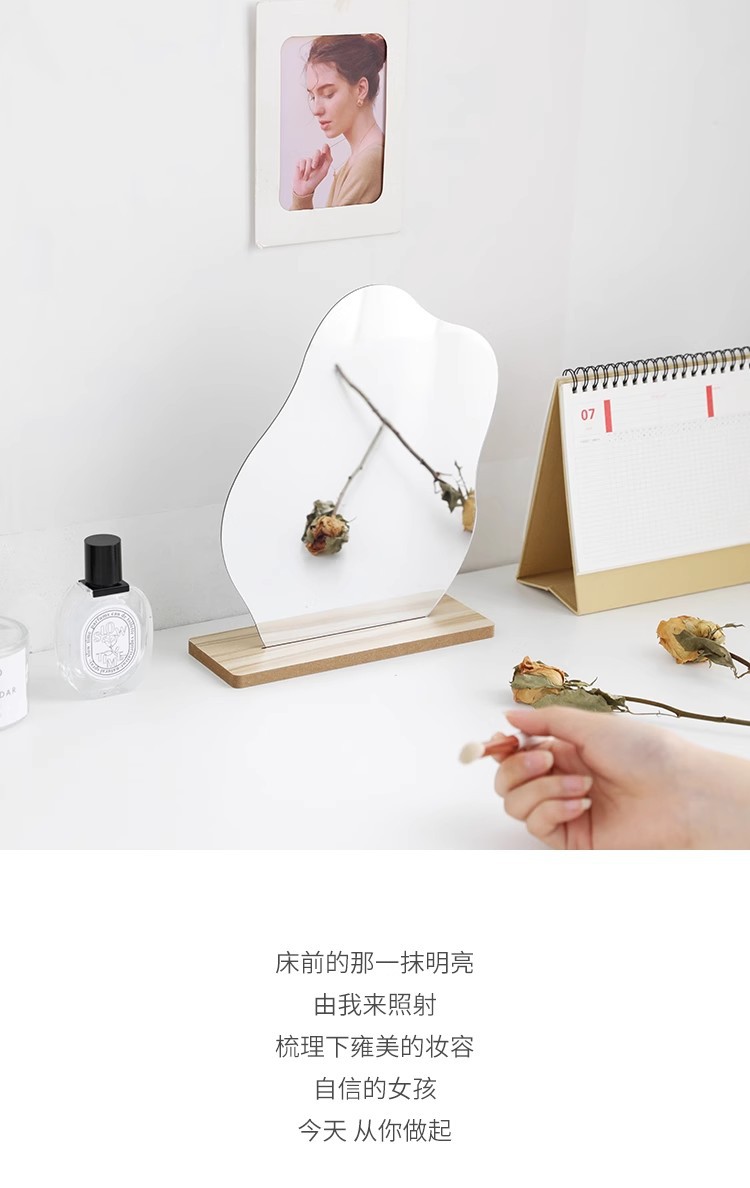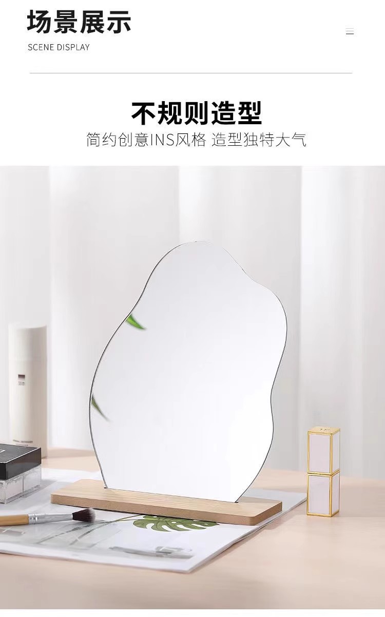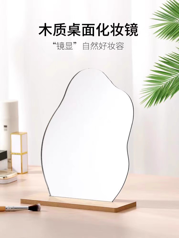 不规则台式化妆镜宿舍桌面木质镜子异形云朵高清亚克力梳妆镜定做