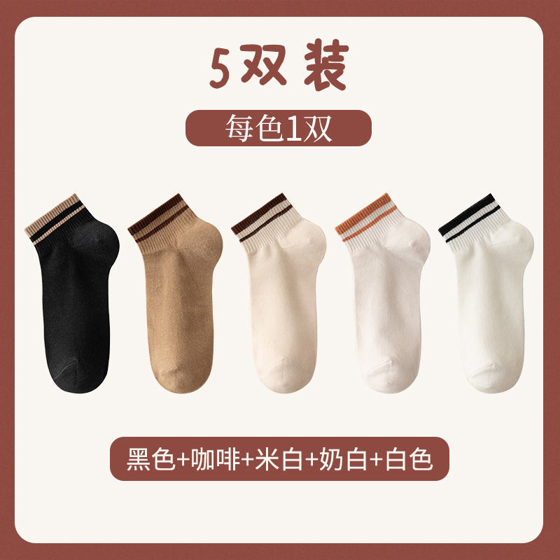 袜子女夏短袜薄款春秋四季纯色双条纹船袜日系运动学生袜
