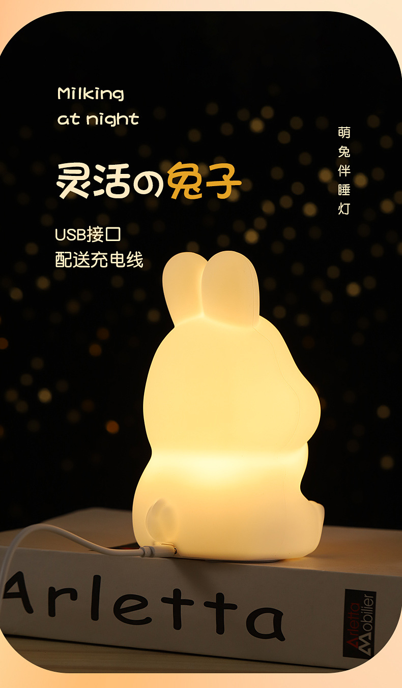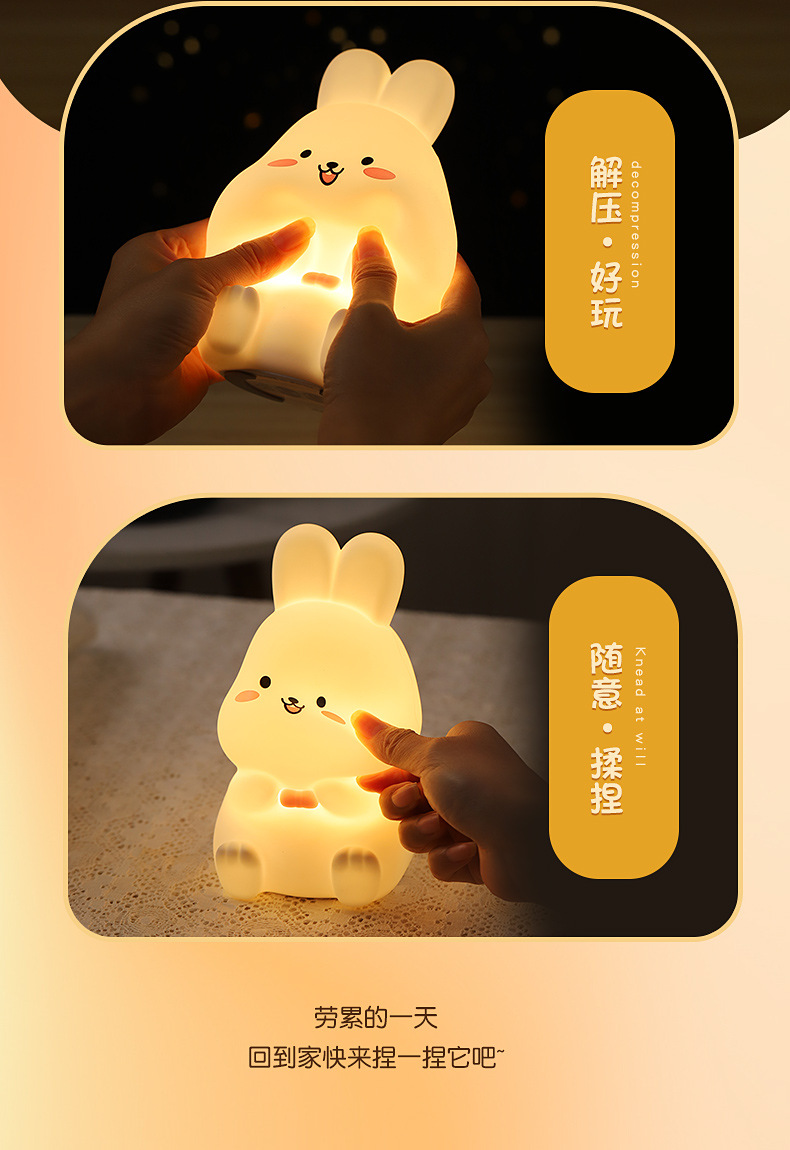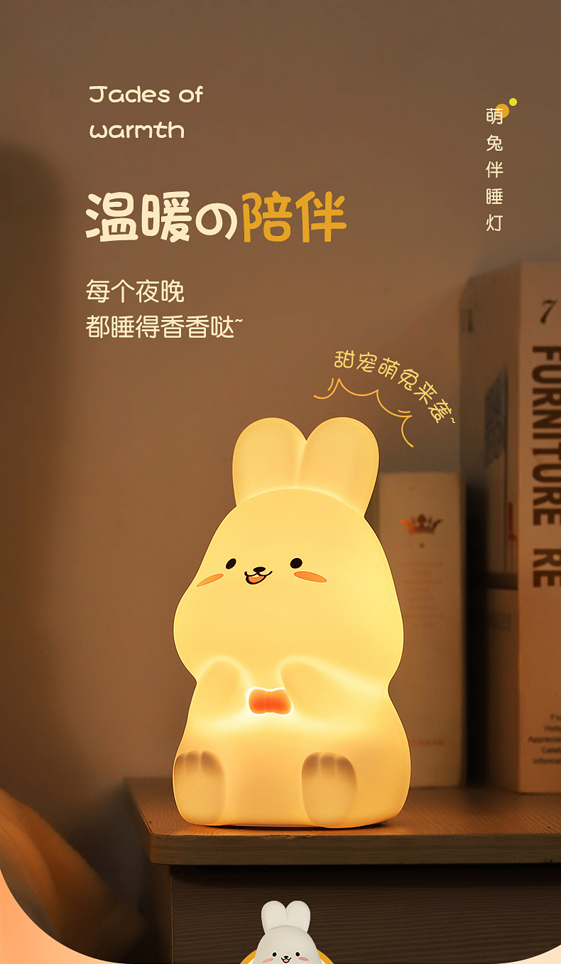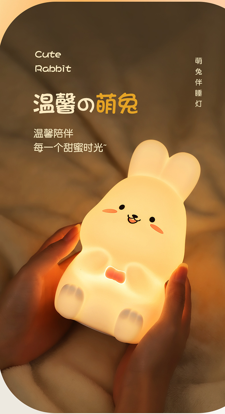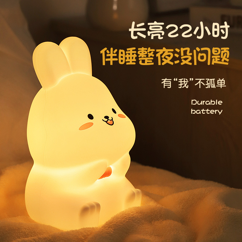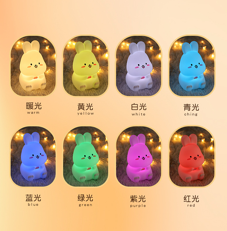 跨境创意兔子生肖拍拍灯硅胶灯七彩室内护眼氛围照明灯小夜灯摆件
