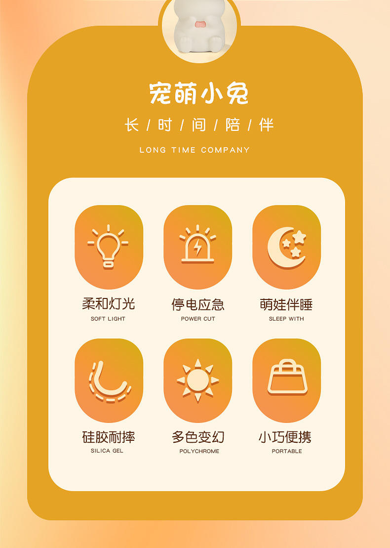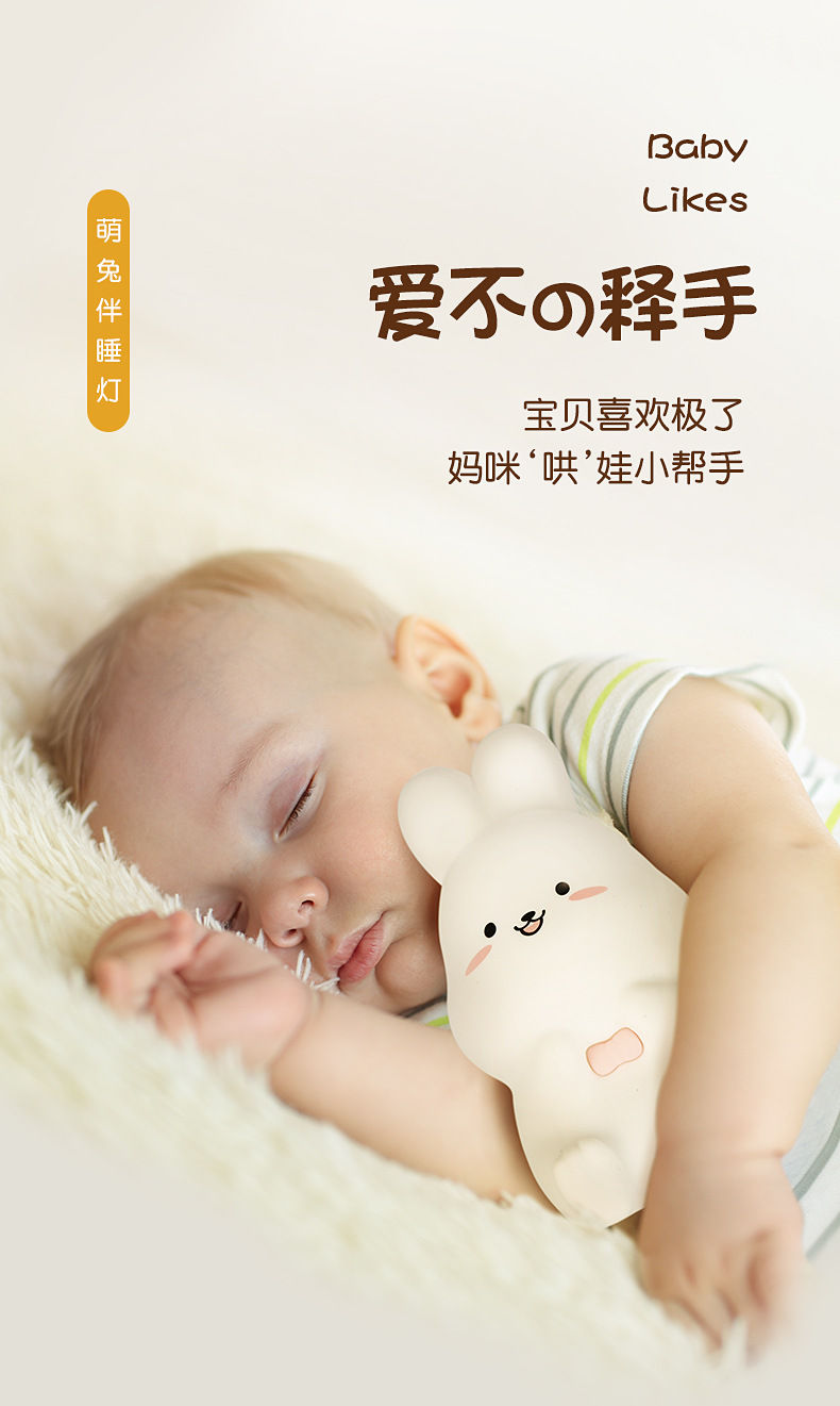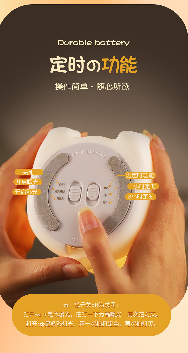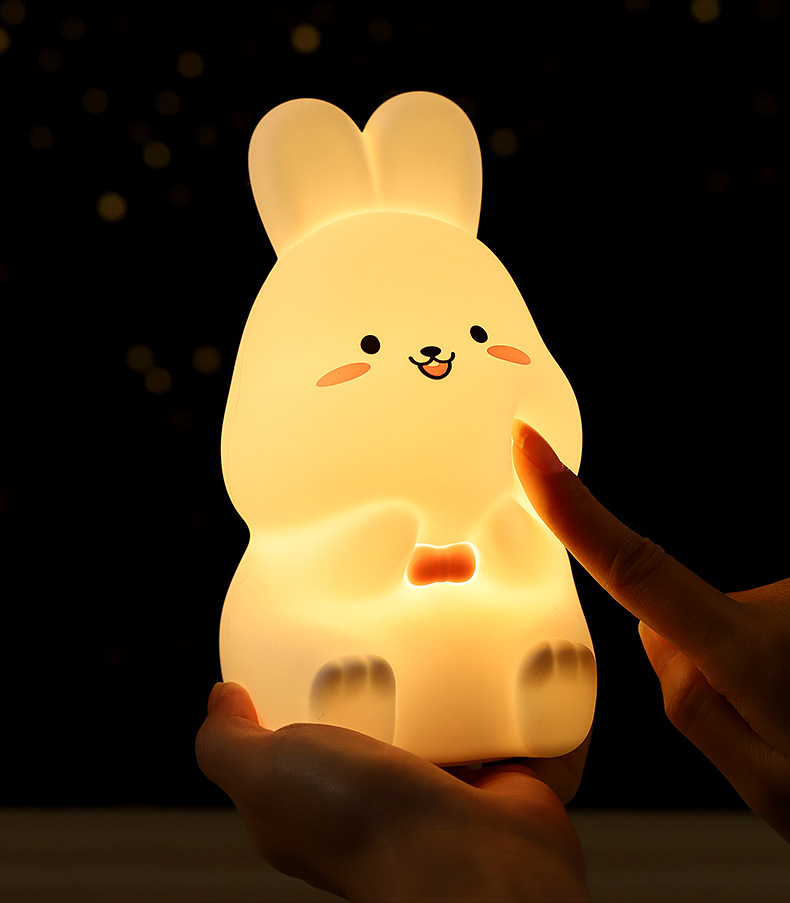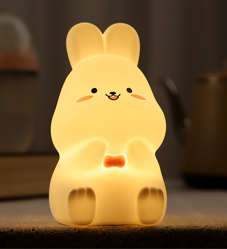 跨境创意兔子生肖拍拍灯硅胶灯七彩室内护眼氛围照明灯小夜灯摆件
