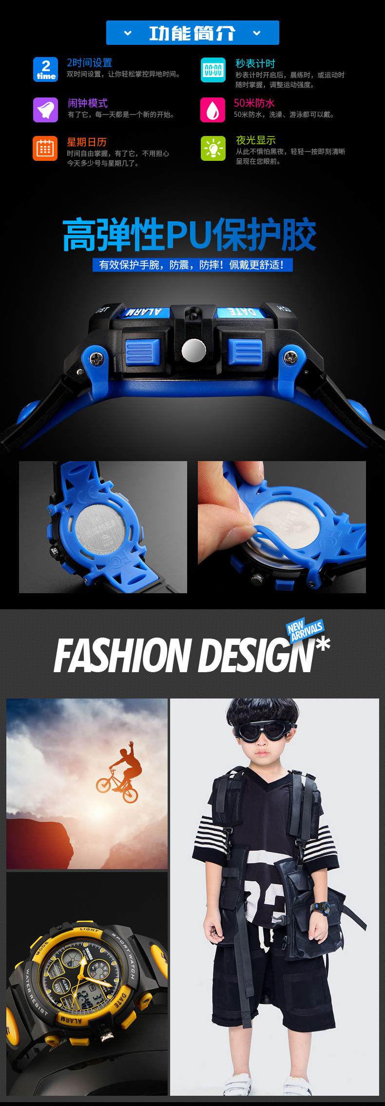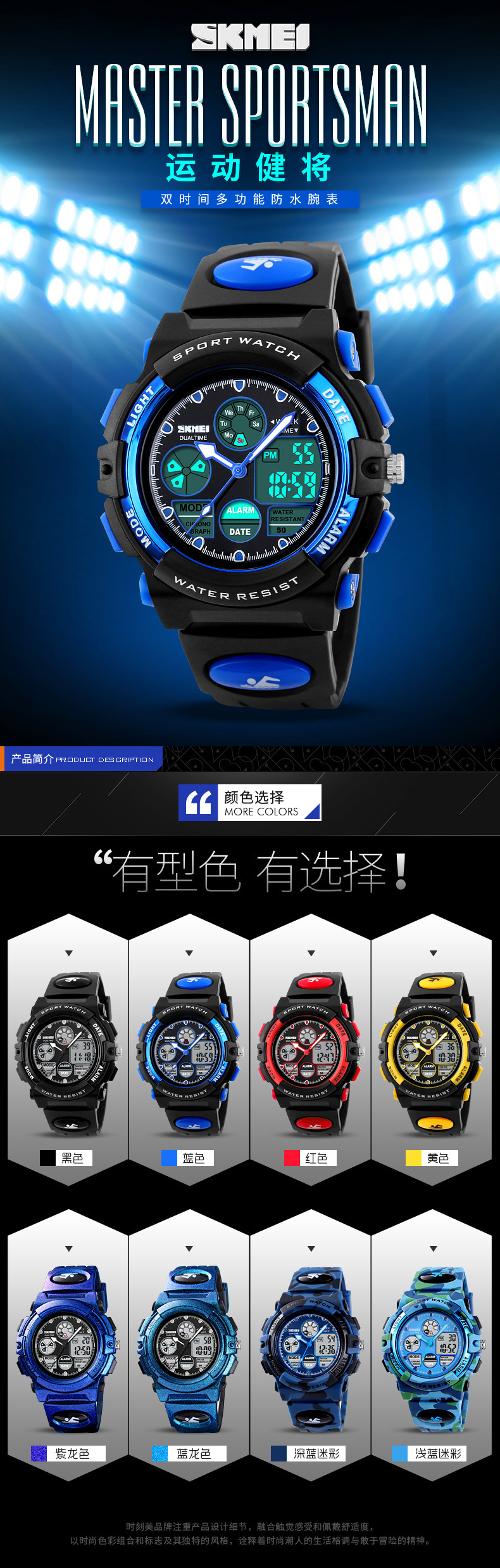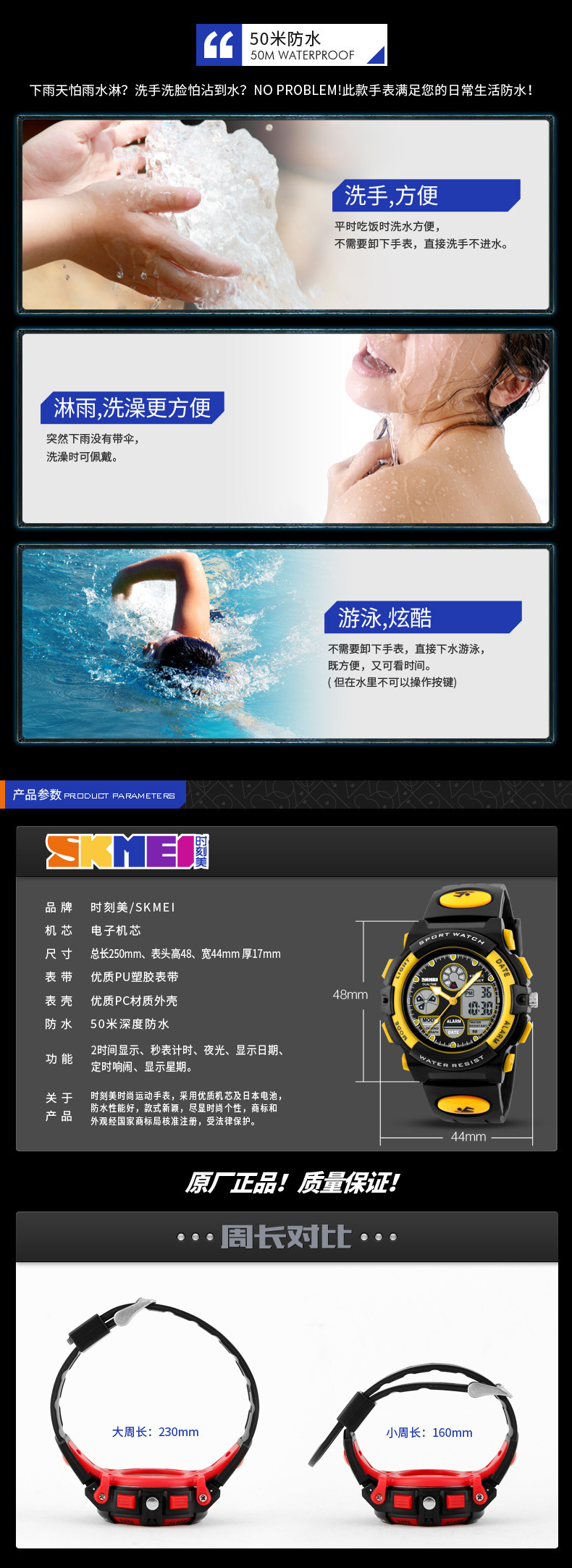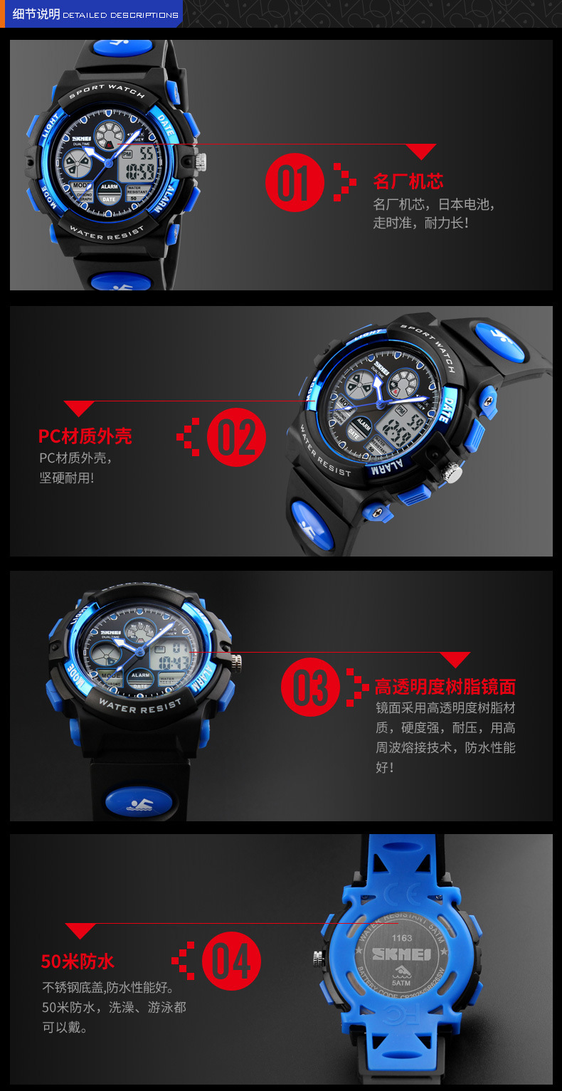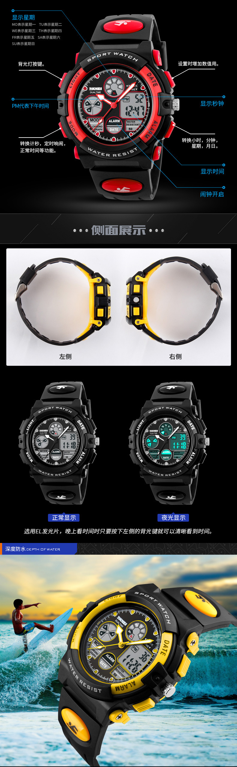 儿童手表时刻美双机芯学生款多功能夜光防水电子表