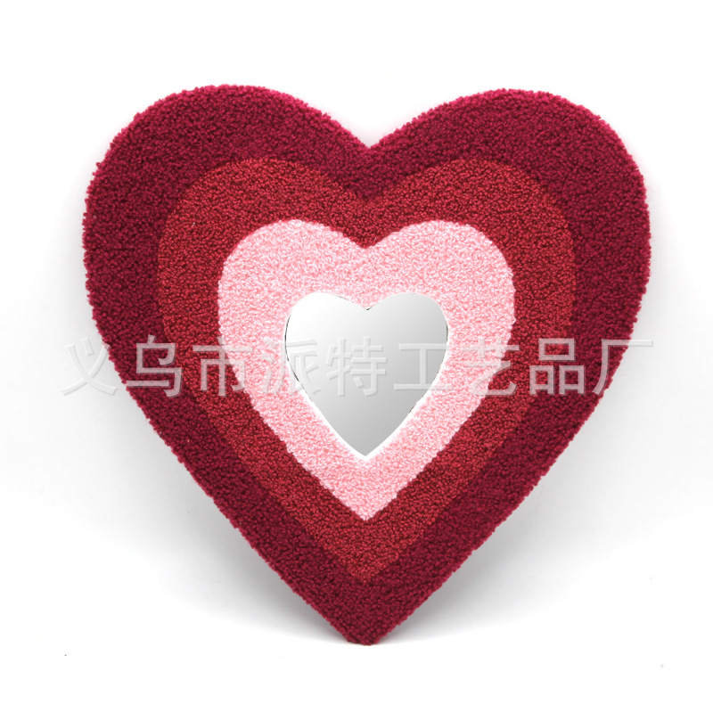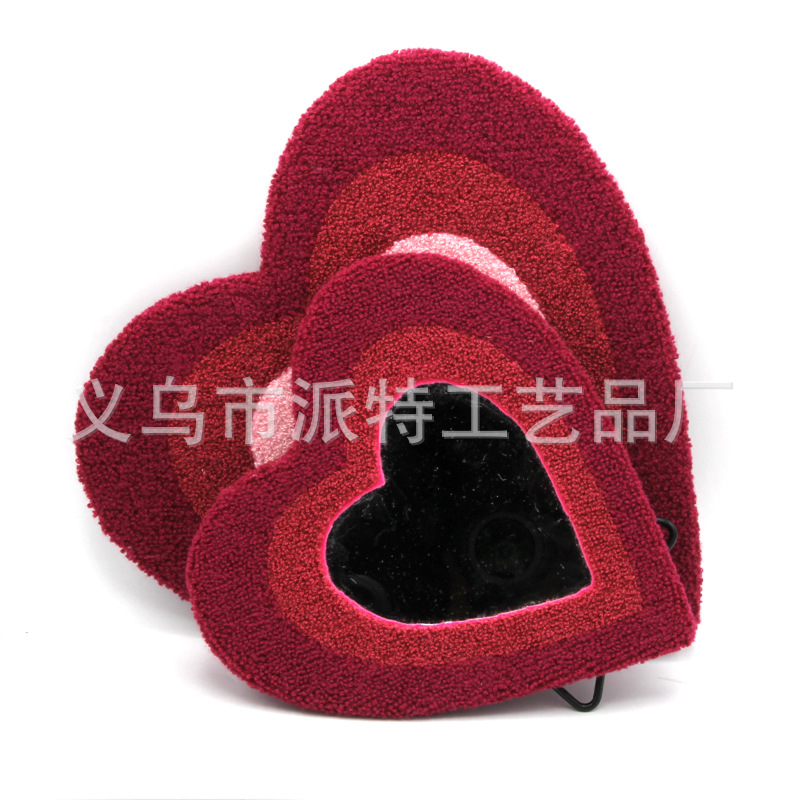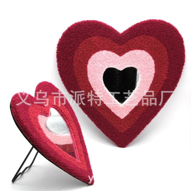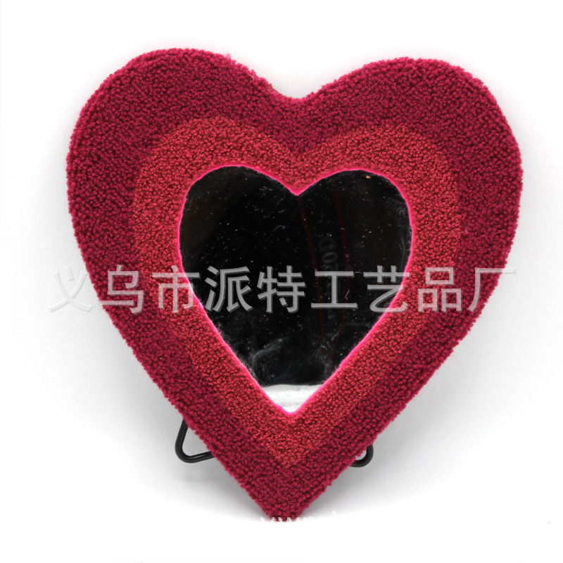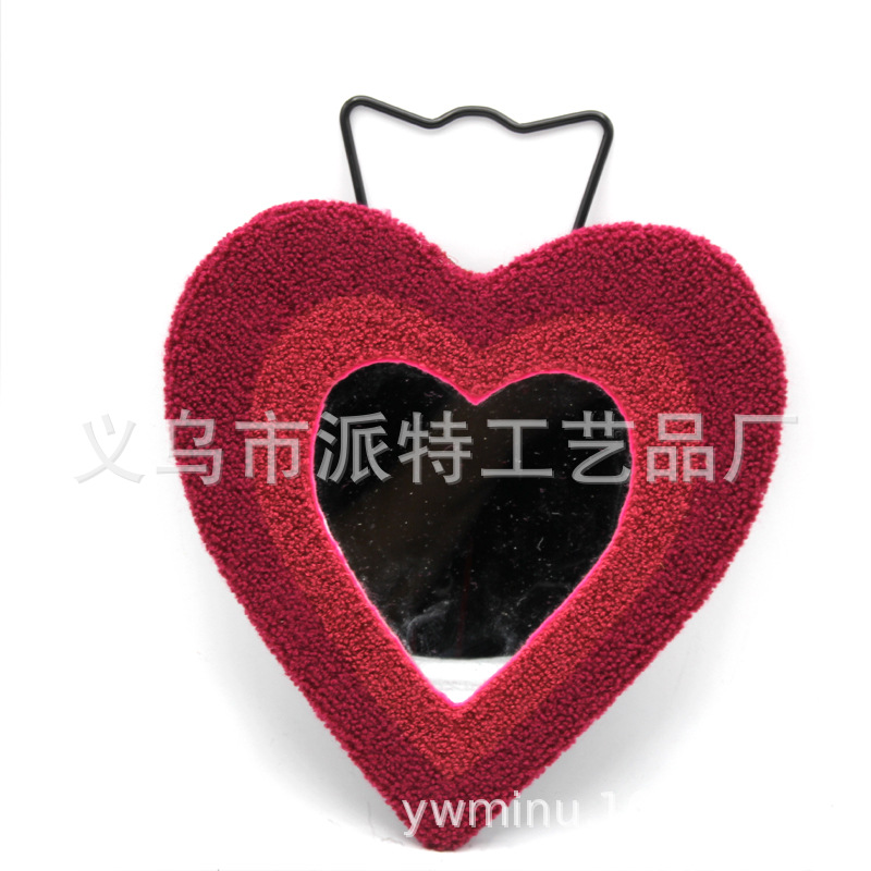 蝶恋花簇绒戳戳绣壁挂台式两用化妆镜毛绒爱心外贸新款厂家直销