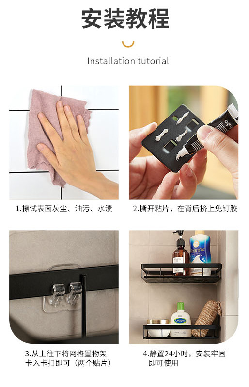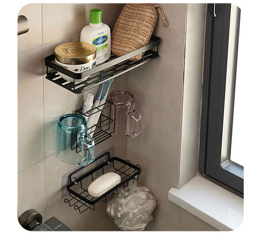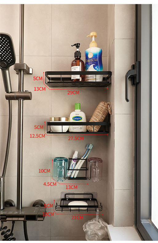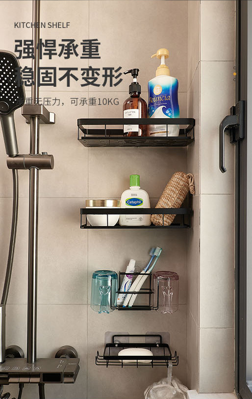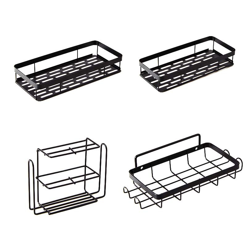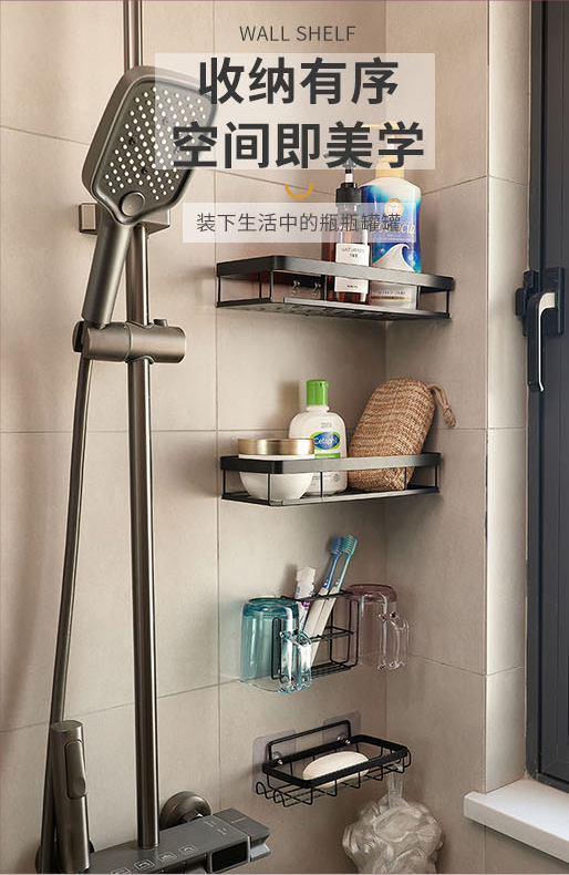 厂家批发免打孔浴室四件套置物架亚马逊跨境卫生间收纳挂壁置物架