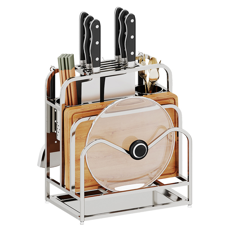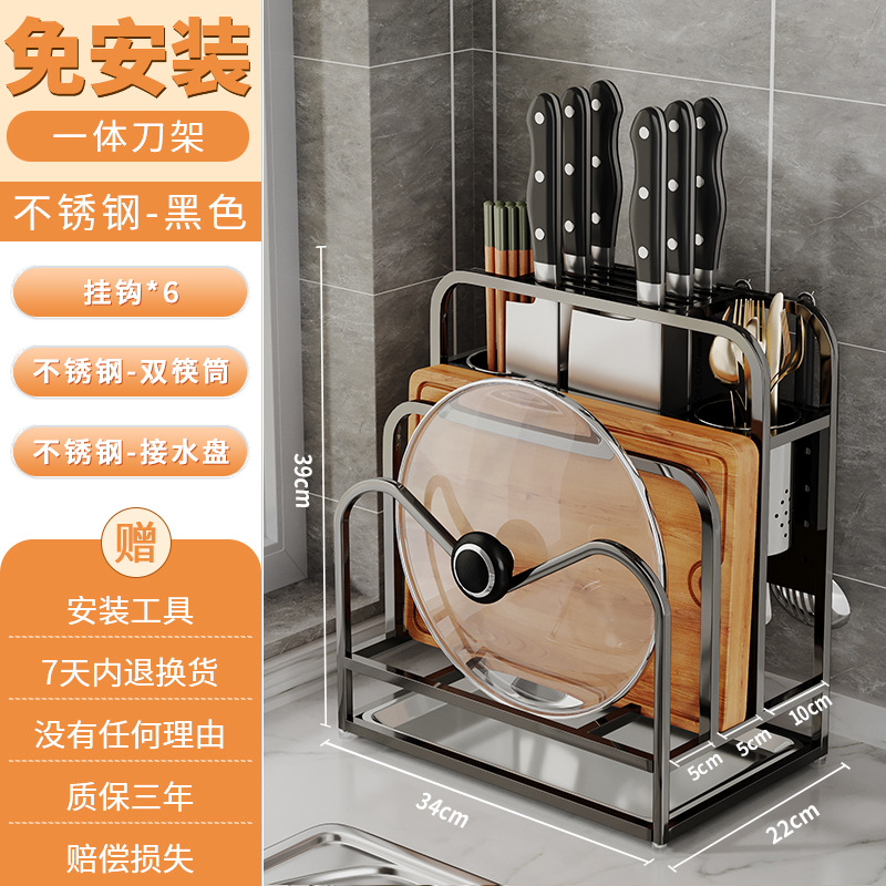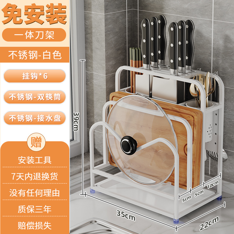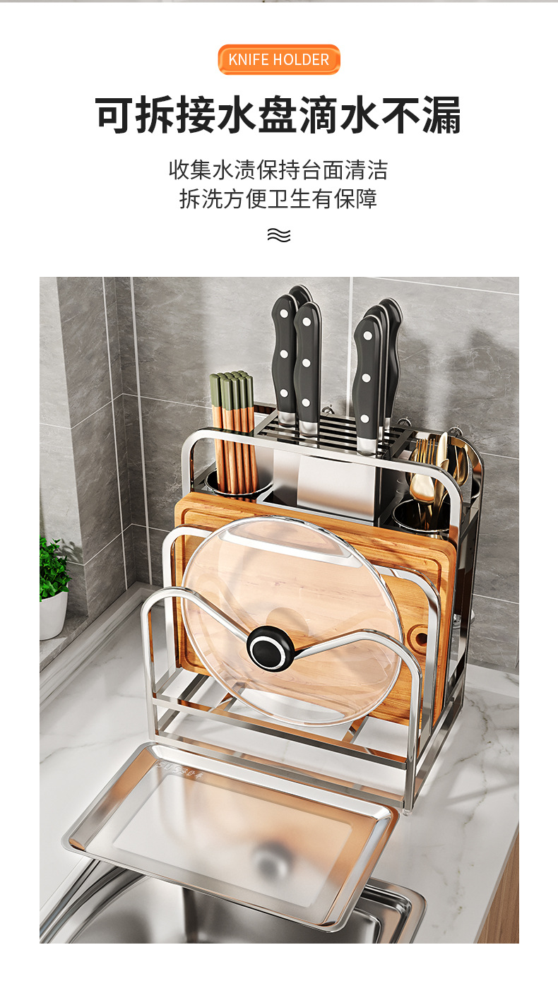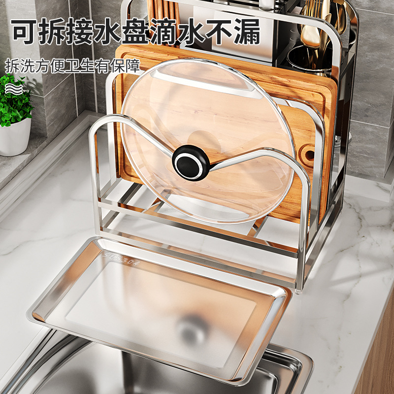 家用厨房刀架置物架锅盖砧板架多功能一体化收纳架厨房台面滤水架