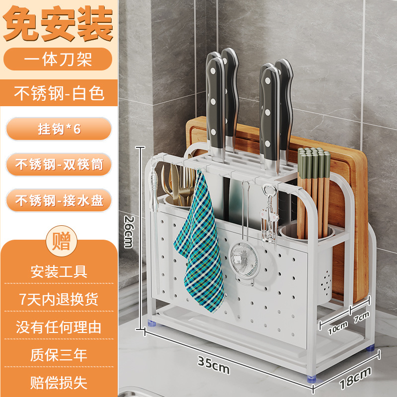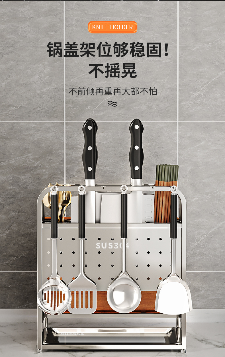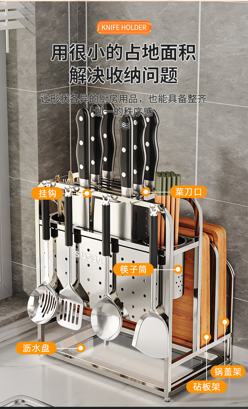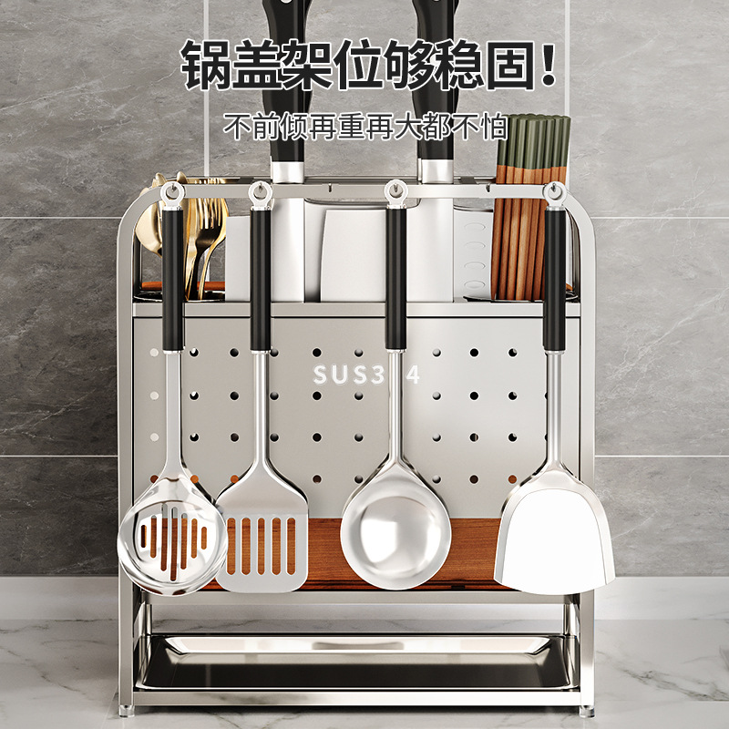 家用厨房刀架置物架锅盖砧板架多功能一体化收纳架厨房台面滤水架