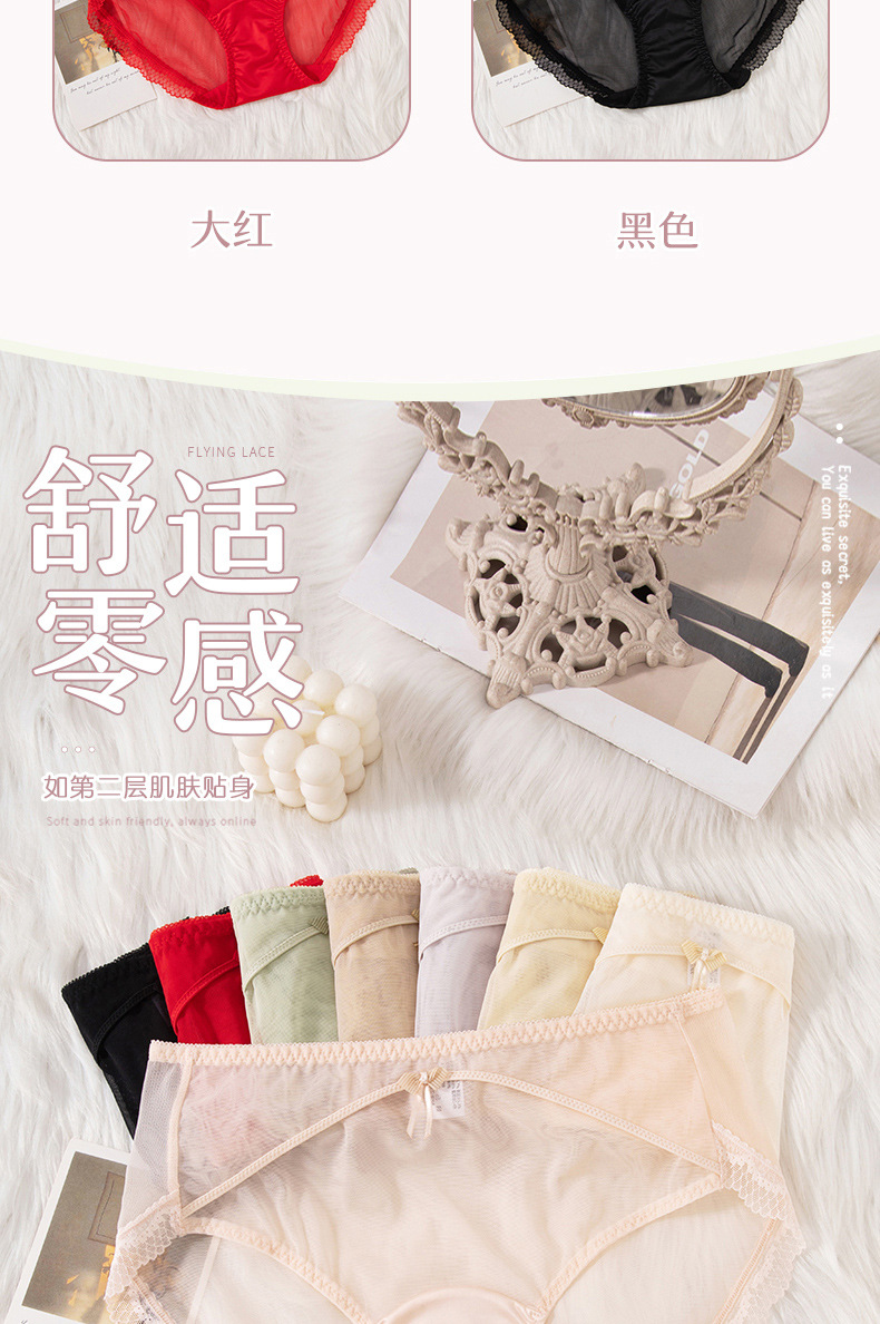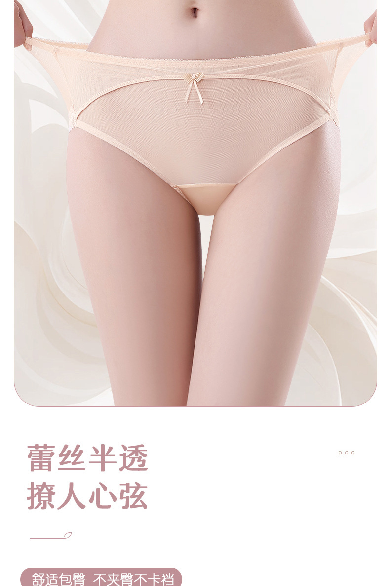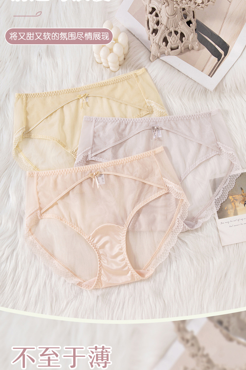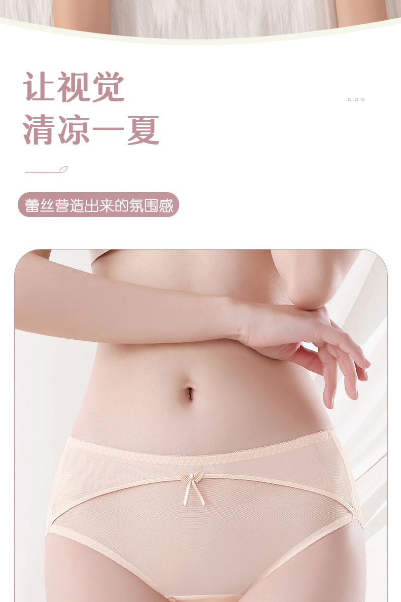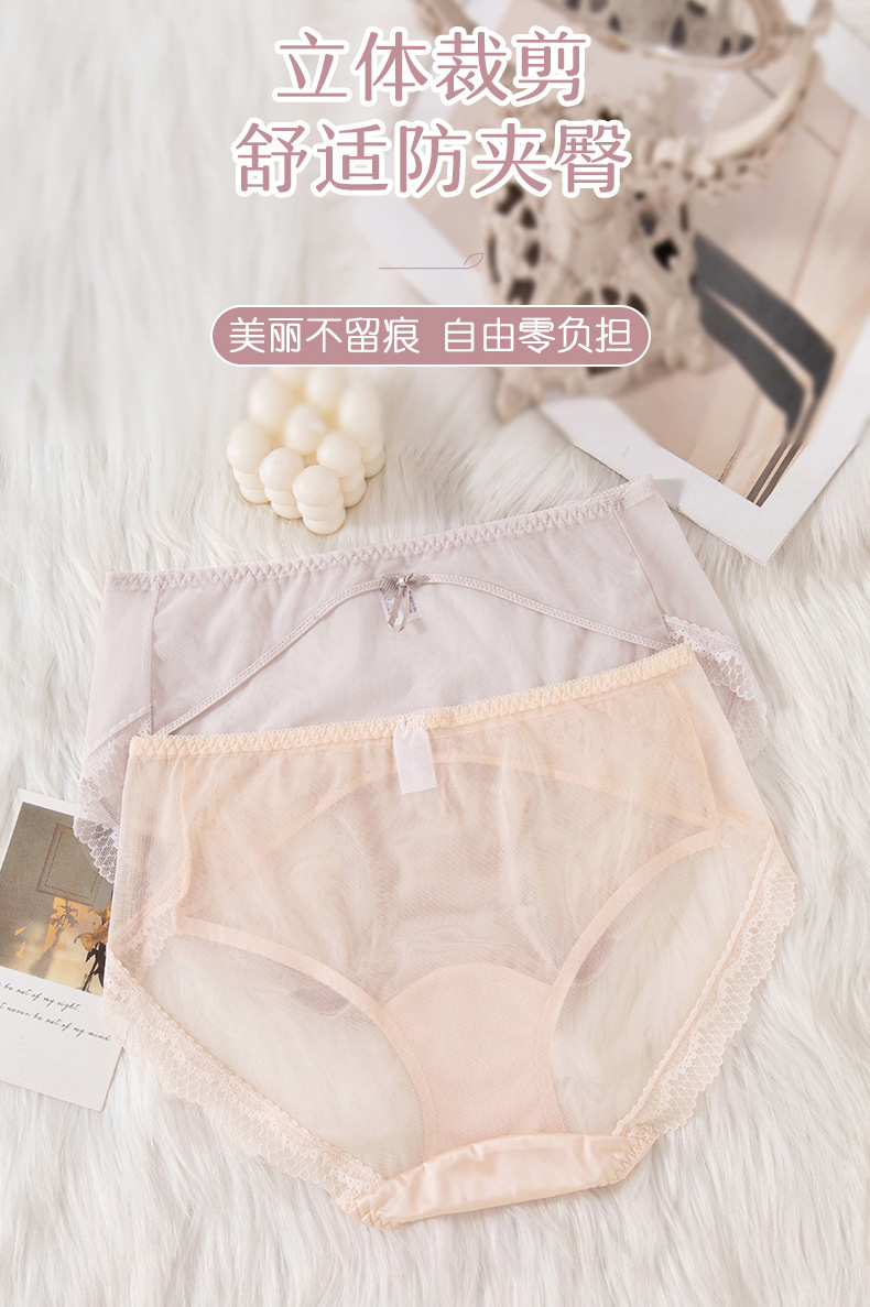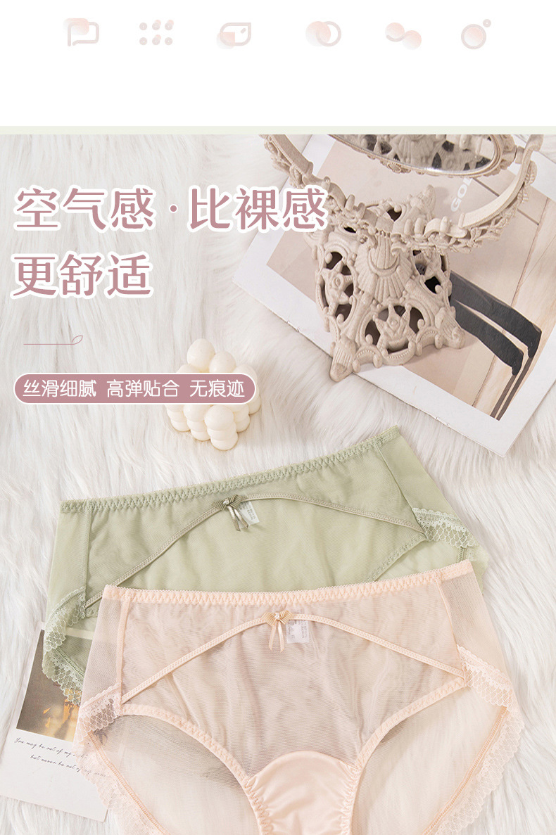 蕾丝女士内裤女性感透明女士内裤纯棉裆中腰拼接速干网纱内裤女