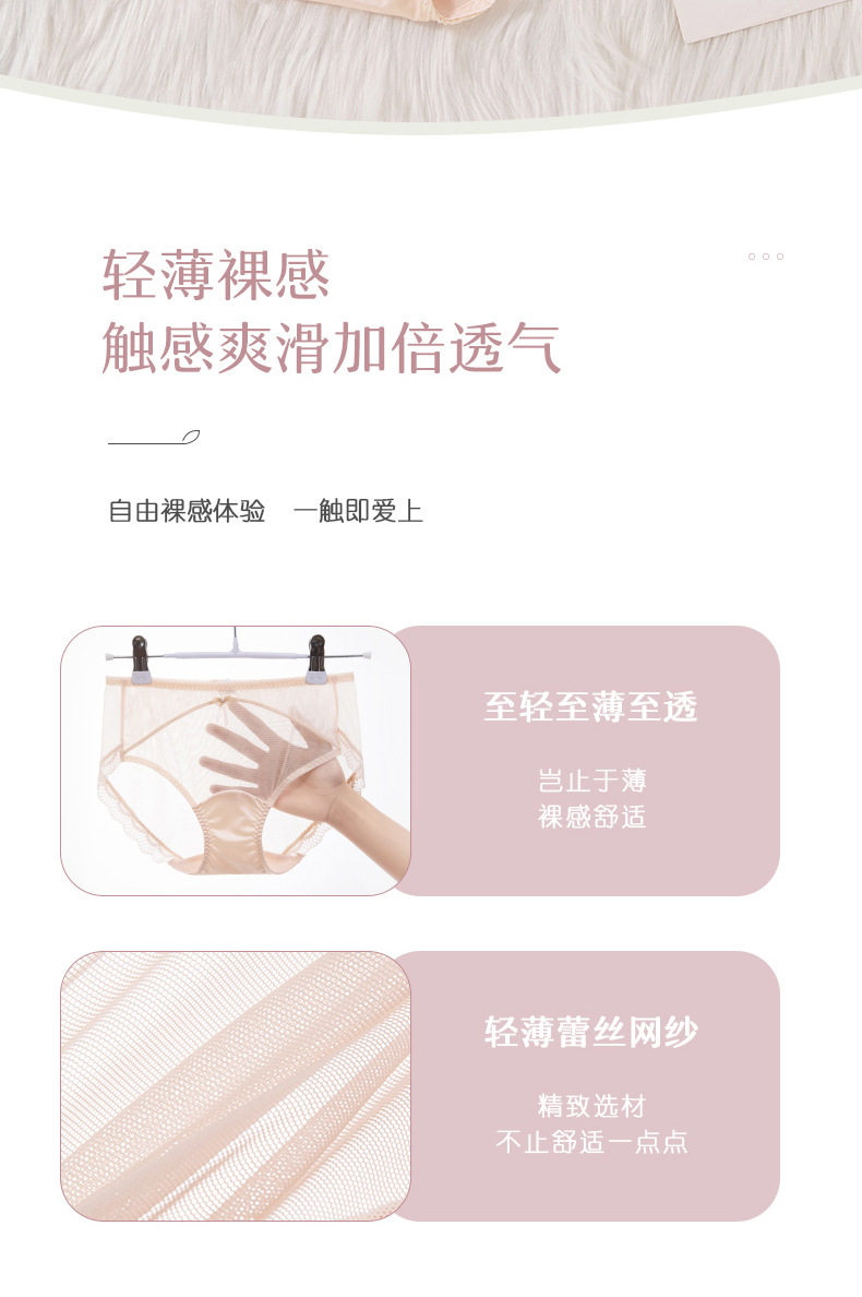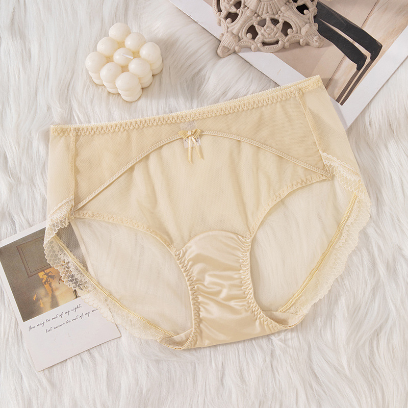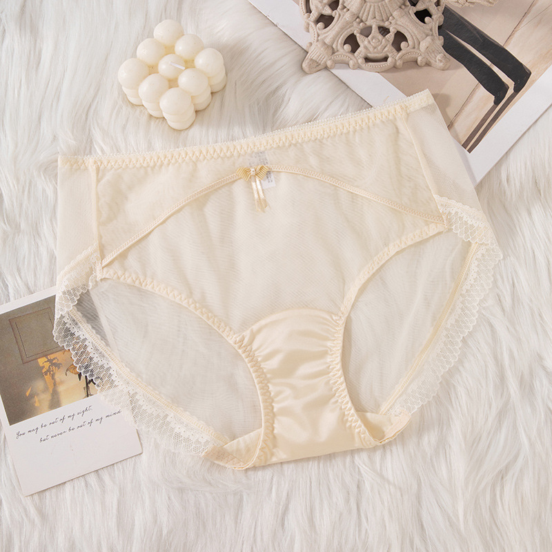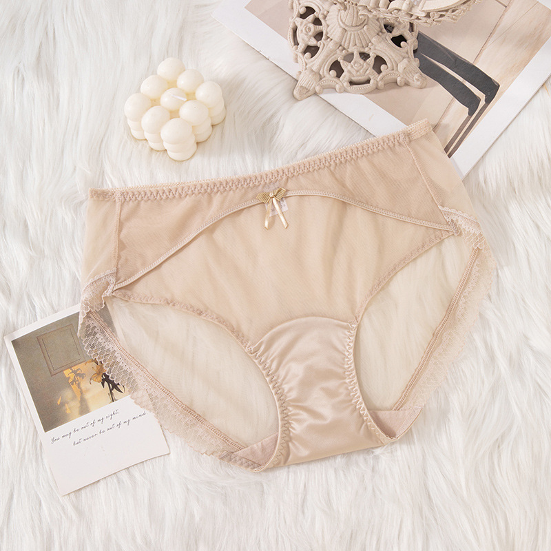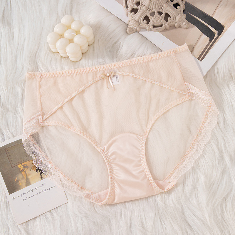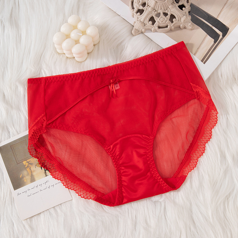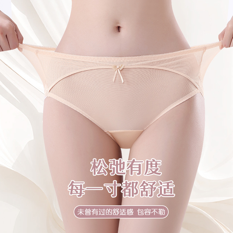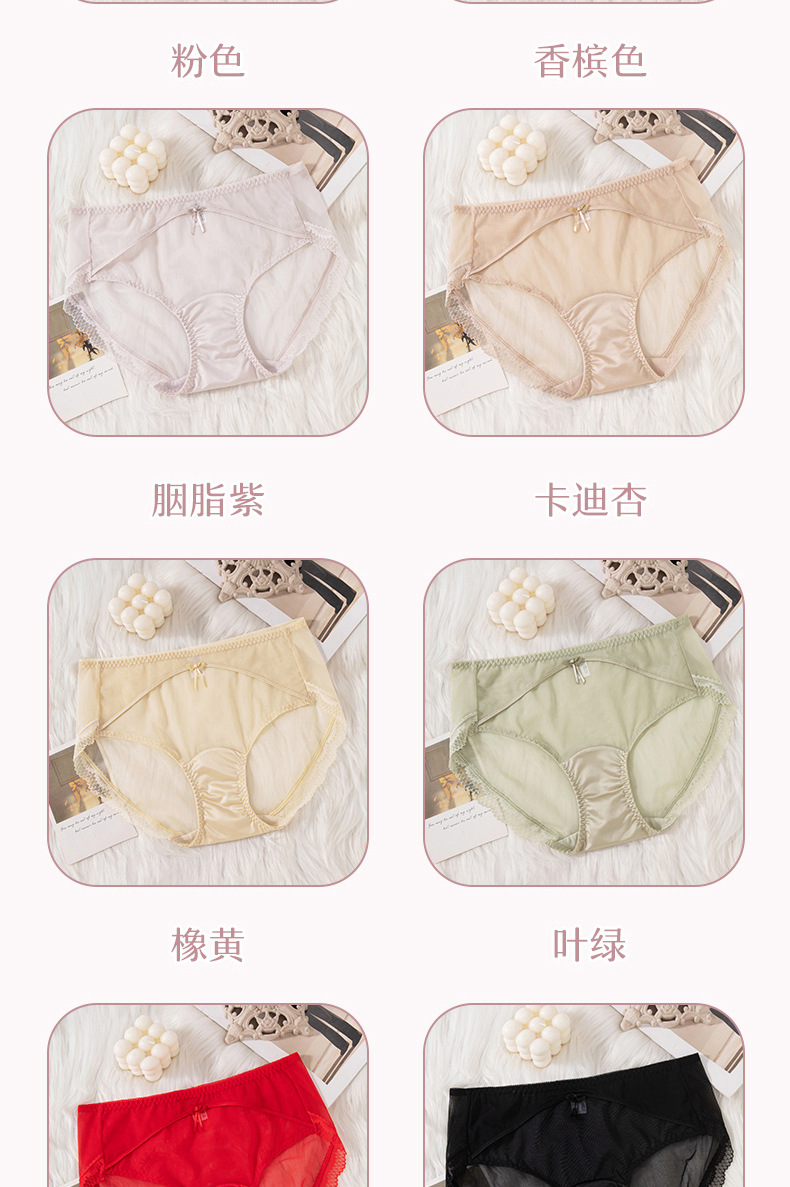 蕾丝女士内裤女性感透明女士内裤纯棉裆中腰拼接速干网纱内裤女
