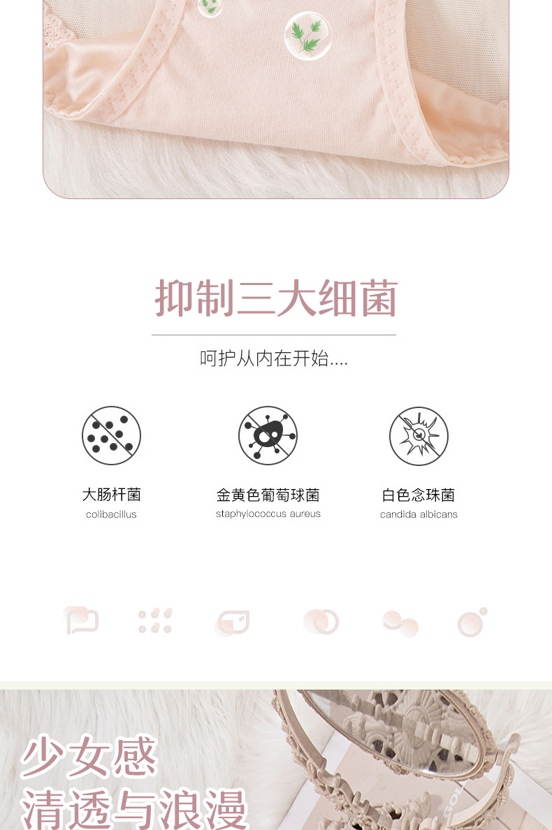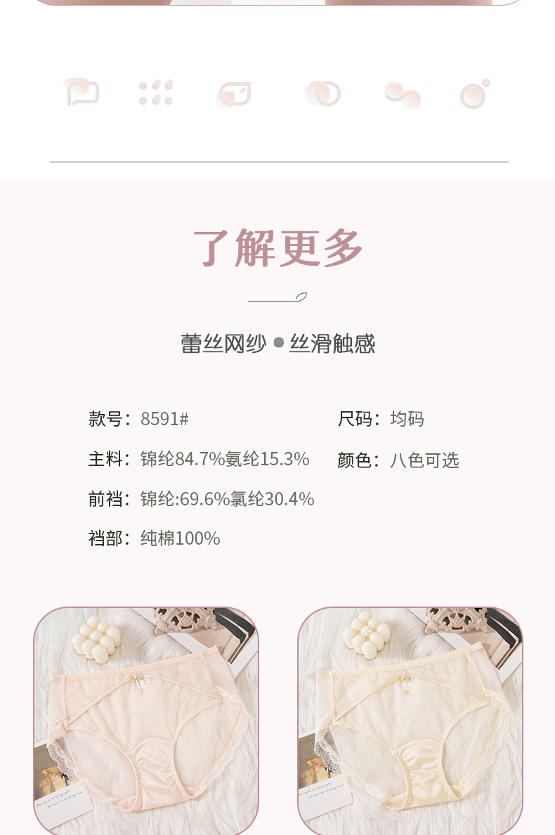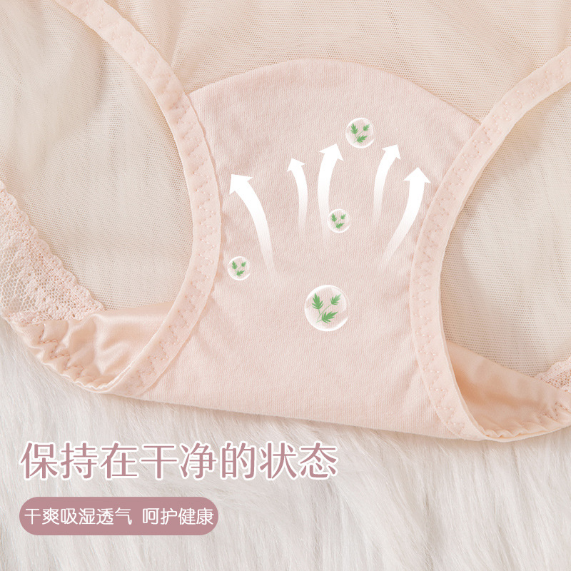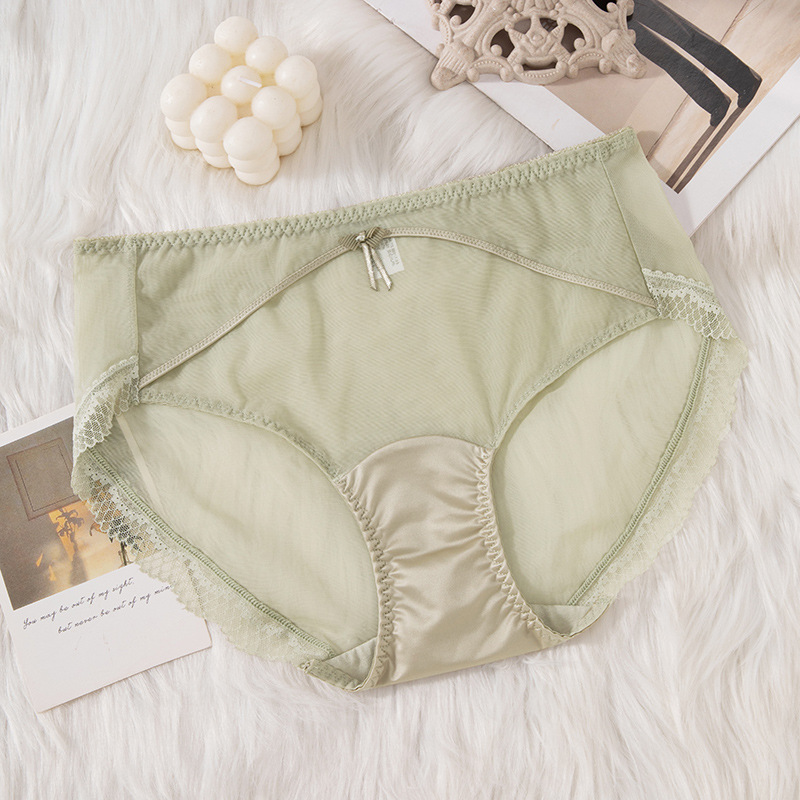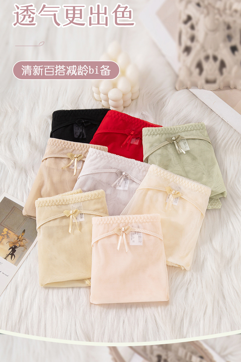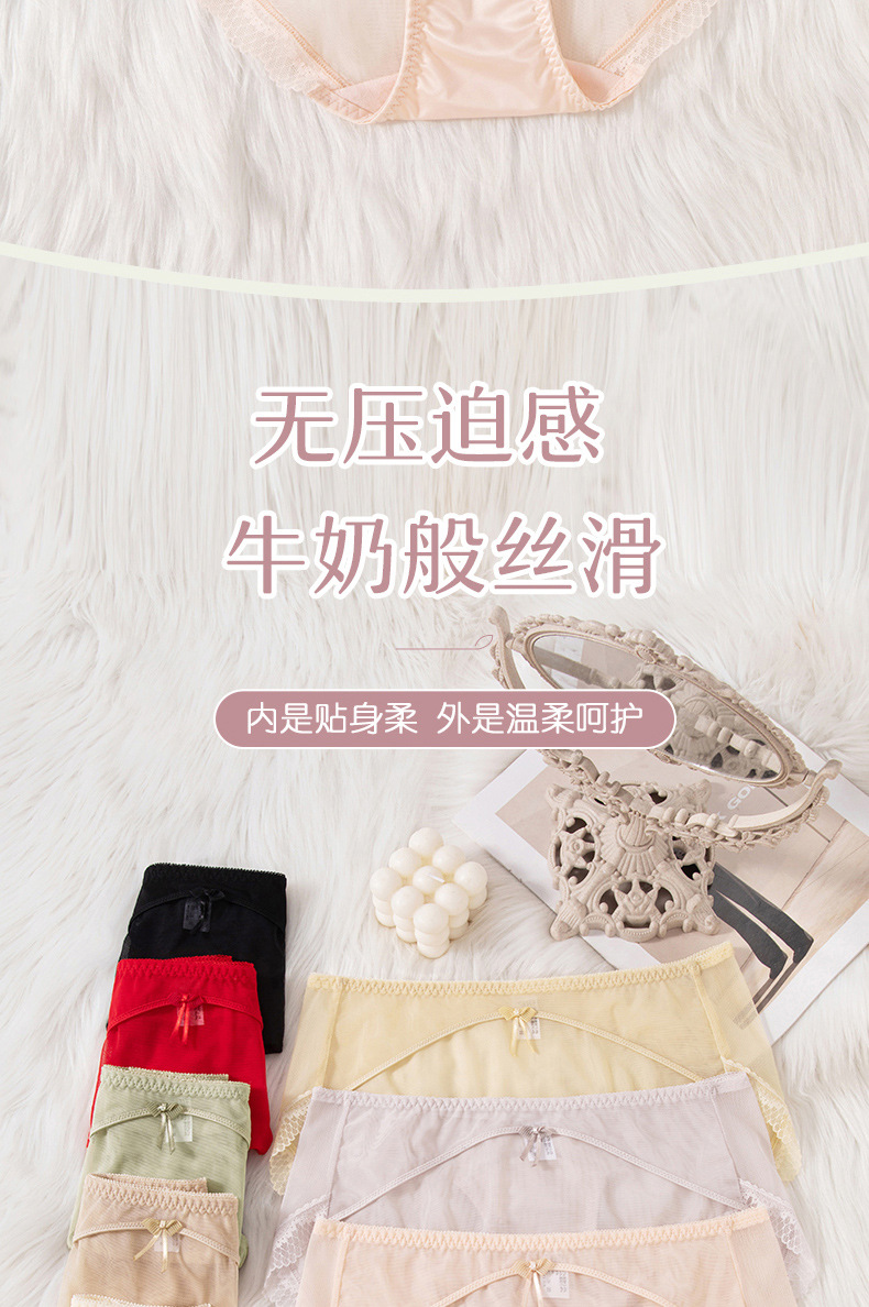 蕾丝女士内裤女性感透明女士内裤纯棉裆中腰拼接速干网纱内裤女
