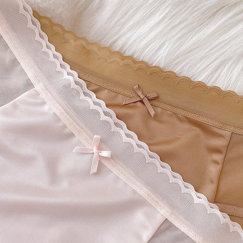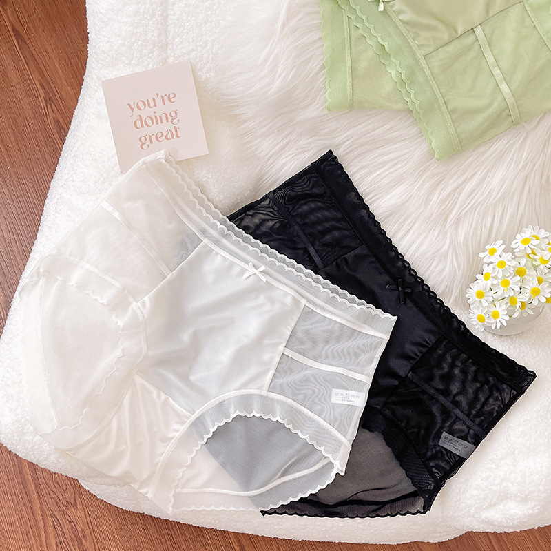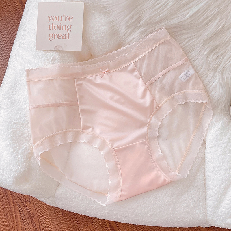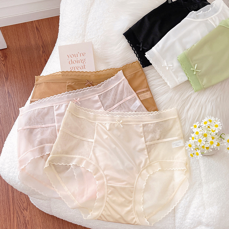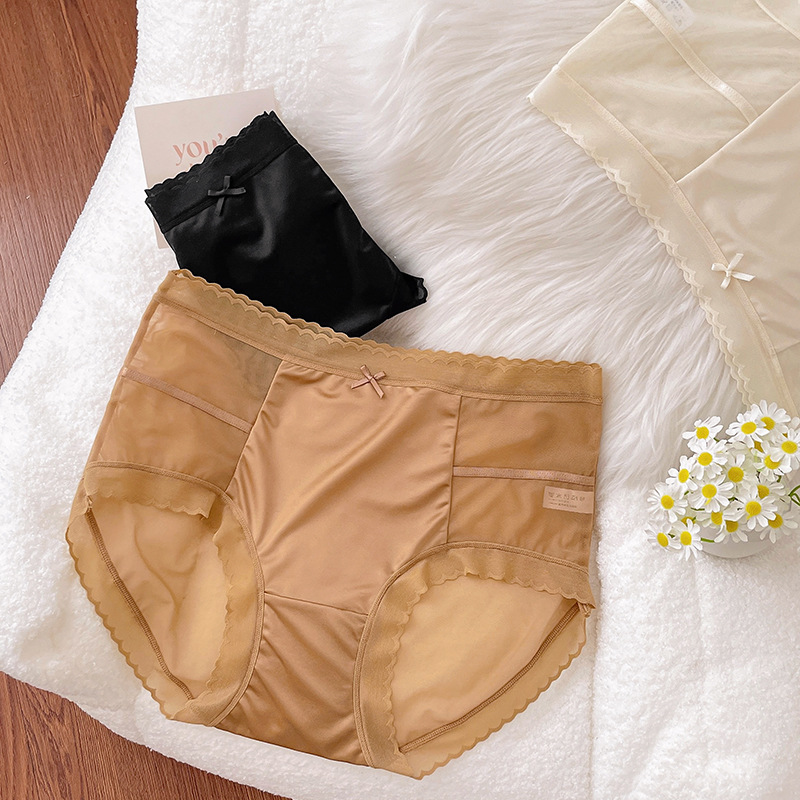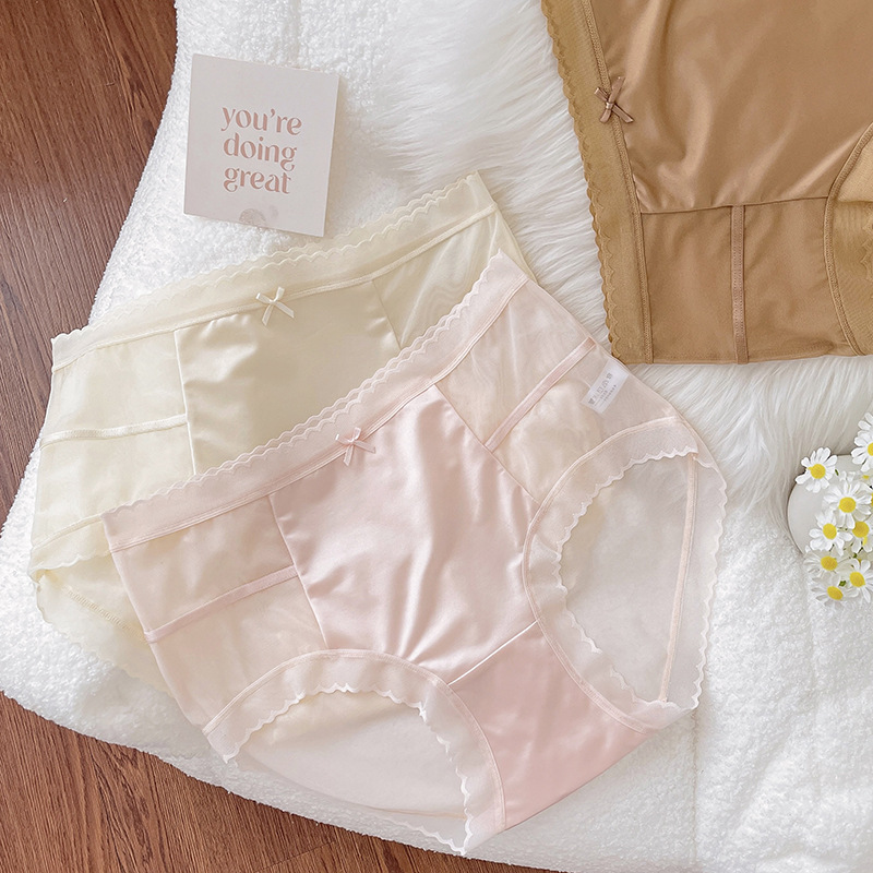 新品蕾丝内裤女丝滑缎面中腰性感女士内裤纯棉裆蕾丝纯欲女内裤