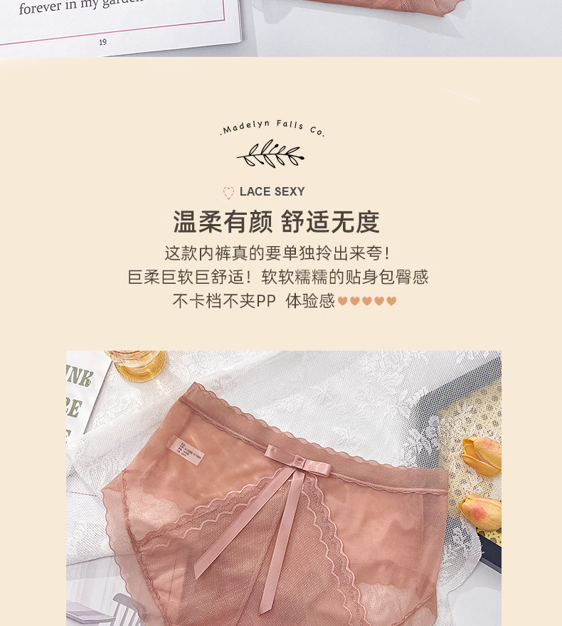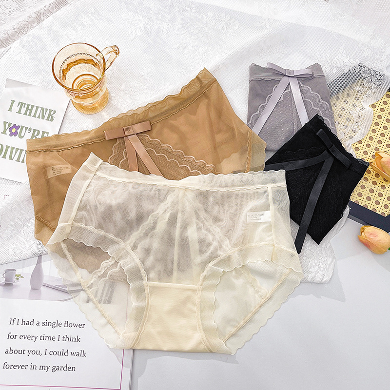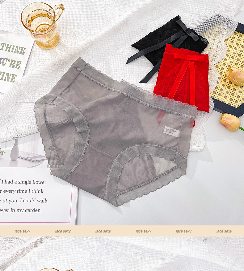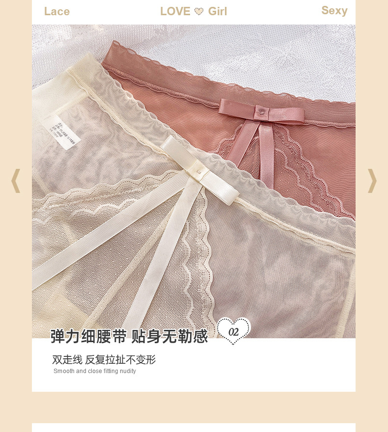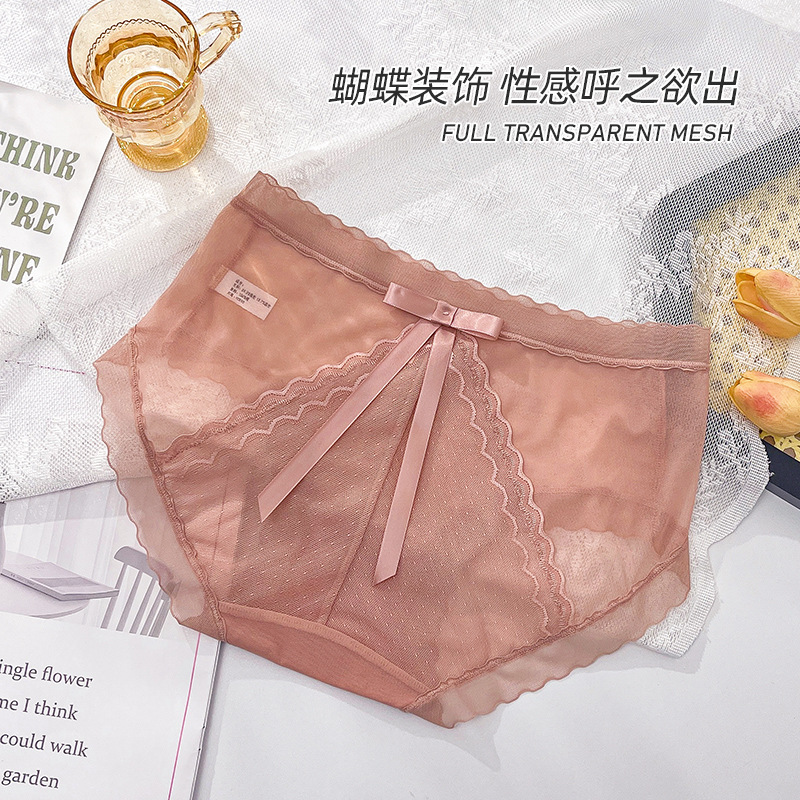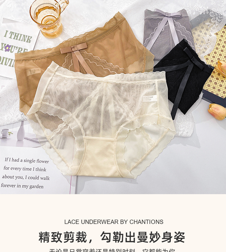 纯欲风内裤女性感蕾丝无痕女士内裤纯棉裆包臀透明纱蝴蝶结女内裤