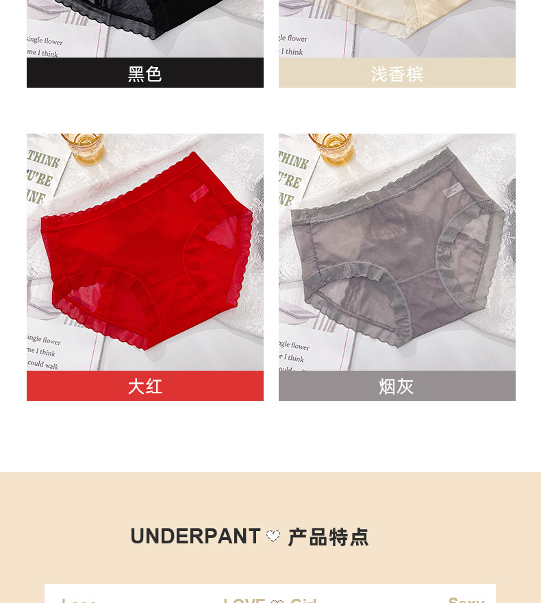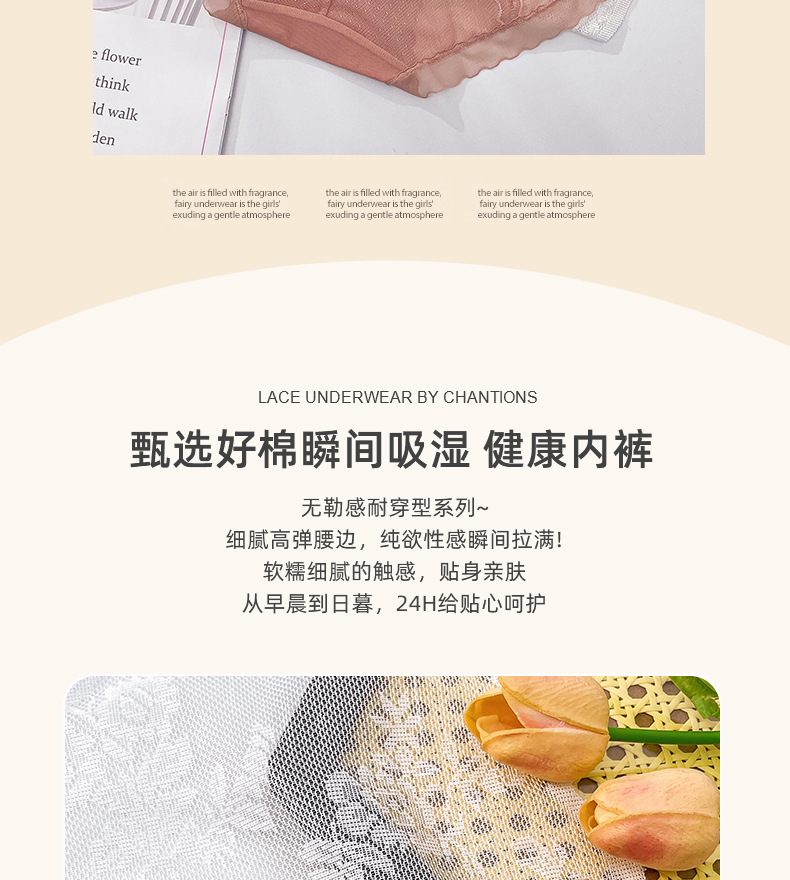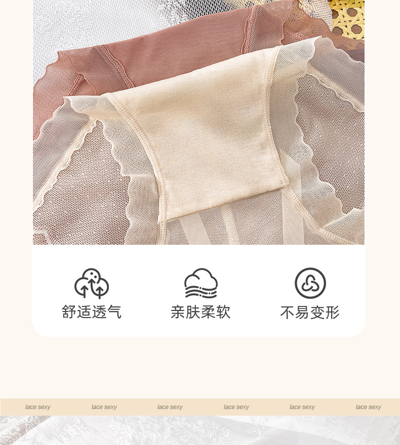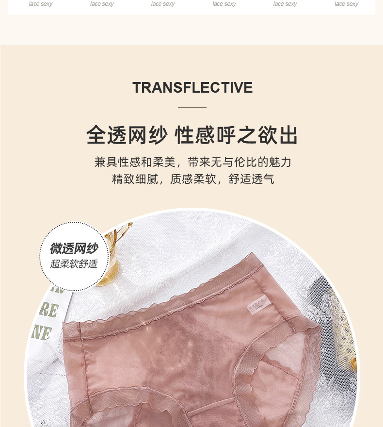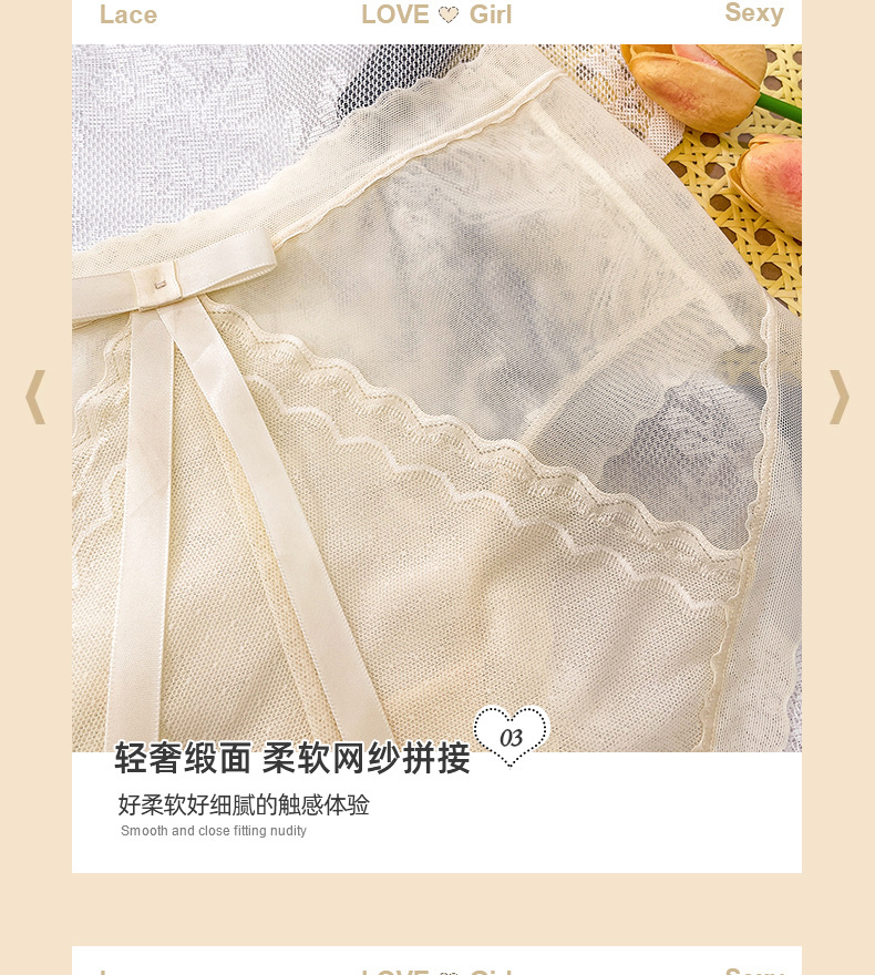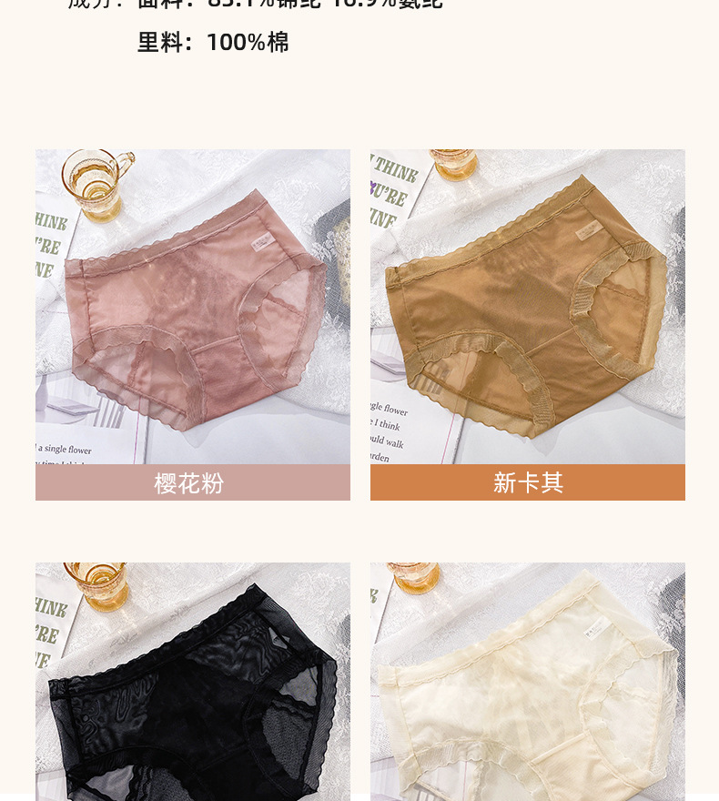 纯欲风内裤女性感蕾丝无痕女士内裤纯棉裆包臀透明纱蝴蝶结女内裤