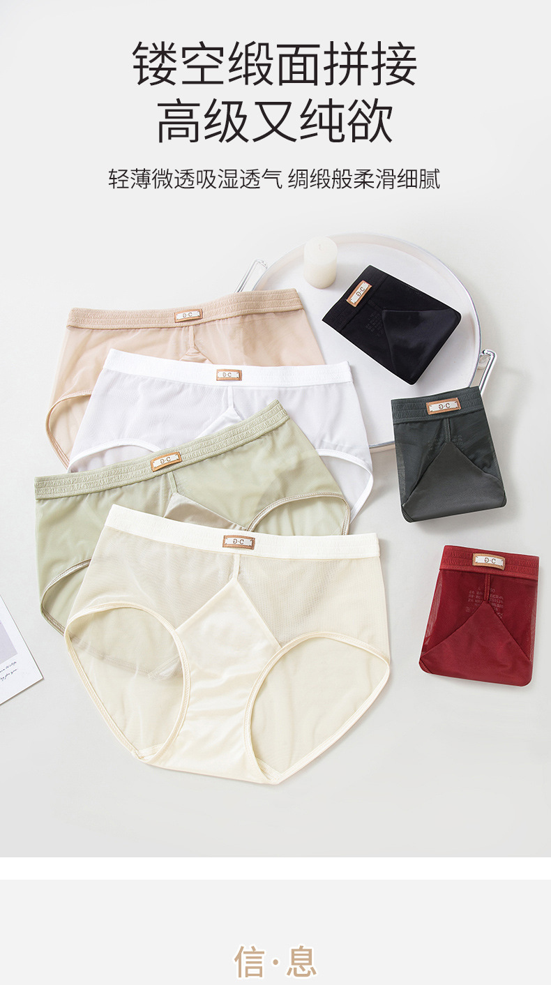 蕾丝内裤女无痕中低腰性感女士内裤蚕丝蛋白透气三角裤女